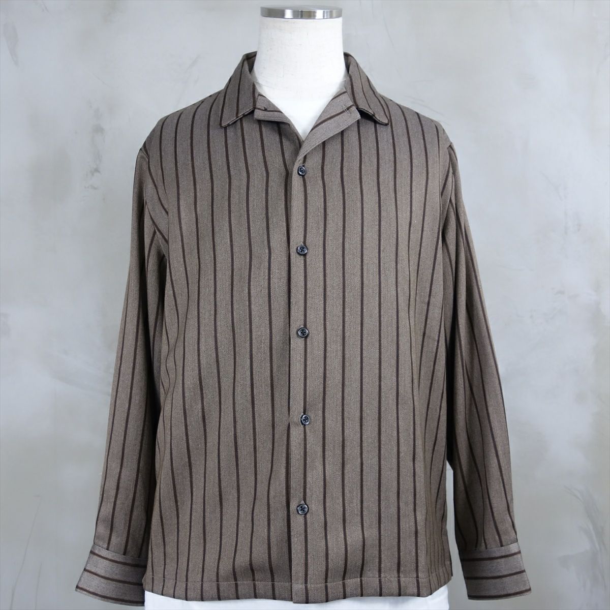 他の画像を見る Fafatt ファファット ストライプオープンカラーシャツ 販売価格 ¥ 7,480 税込 オープンカラー仕様のブラウンベースストライプシャツです。ポリエステル多めの素材感なので、着た時の動きがよく出るシャツとなっております。着回ししやすいボックスシルエットとオータムカラーなので、1枚で季節感を演出できます。インナー使いとしてもとても適したアイテムです。スラックスとセットアップ仕様になっております。 カートに入れる お気に入りに登録する