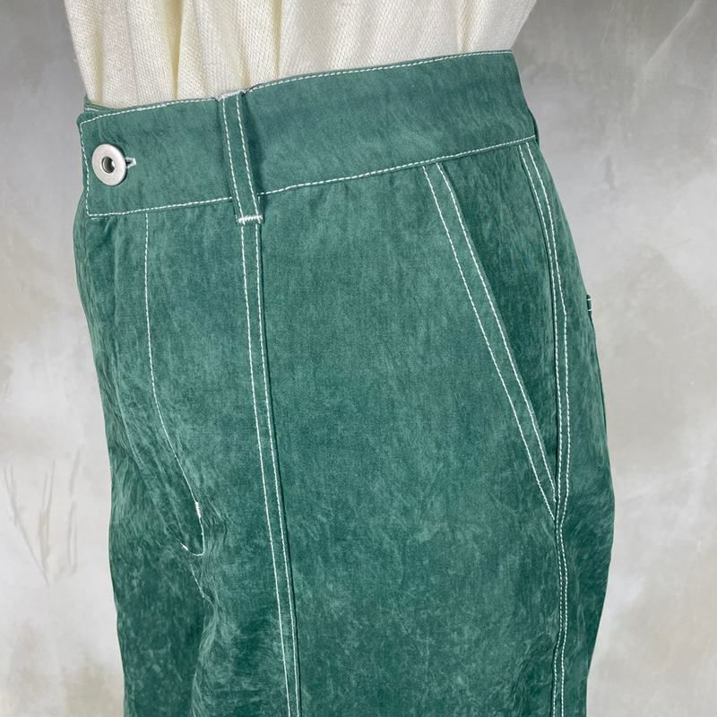 他の画像を見る レザースラックス グリーン 販売価格 ¥ 8,580 税込 在庫切れ レザーのスラックスパンツです。テーパードがかかっていますが、ゆったりとしたシルエットになっています。ジャケットやニットなどと合わせたコーディネートがおすすめです。また、柄物と相性が良いので個性的なスタイリングもできます。同色同生地のダブルテーラードジャケットがありますので、セットアップとしても楽しんで頂けます。 詳細を見る お気に入りに登録する