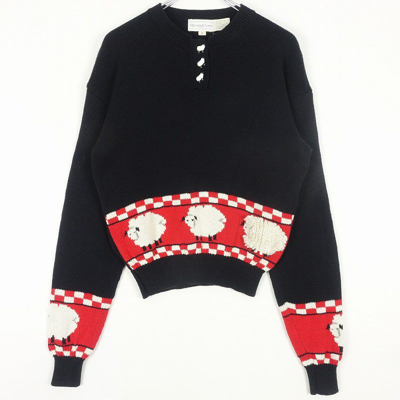 古着 コットン 羊モチーフ ニット