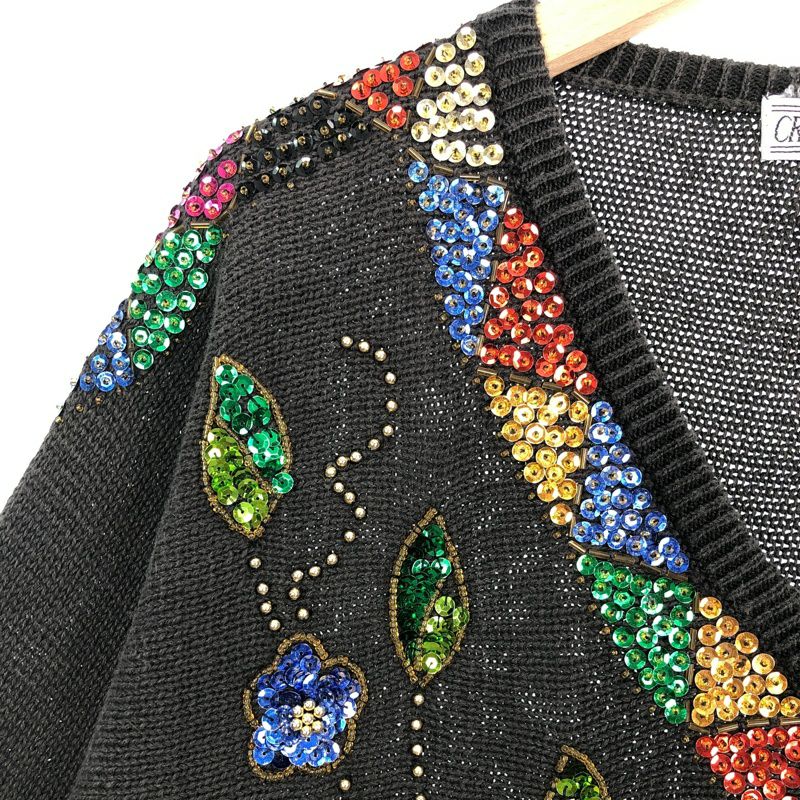 古着 スパンコール Vネック ニット