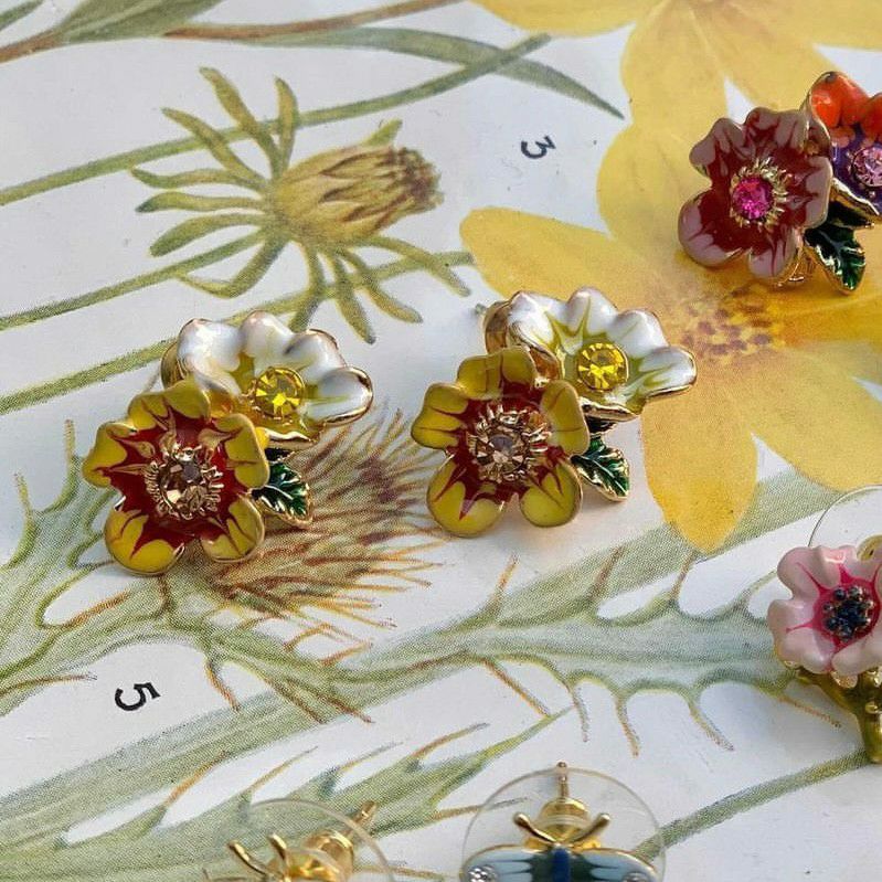 フラワー デザイン ピアス イエロー