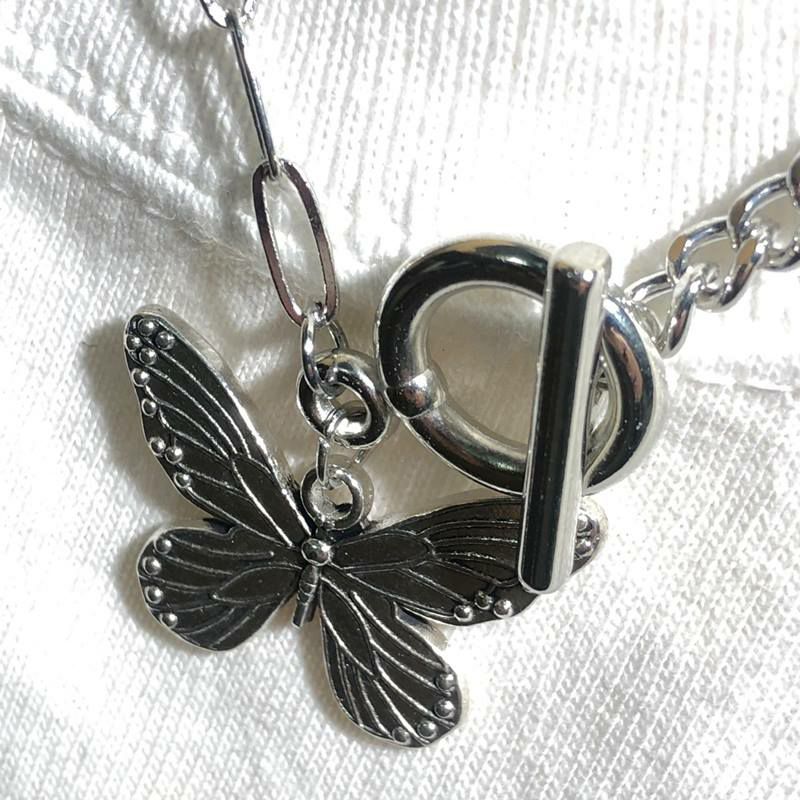 バタフライ チェーン デザイン ネックレス シルバー