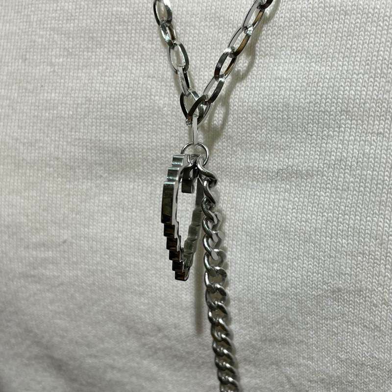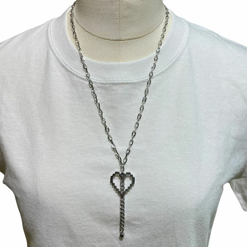 変形 ハート デザイン チェーン ネックレス シルバー
