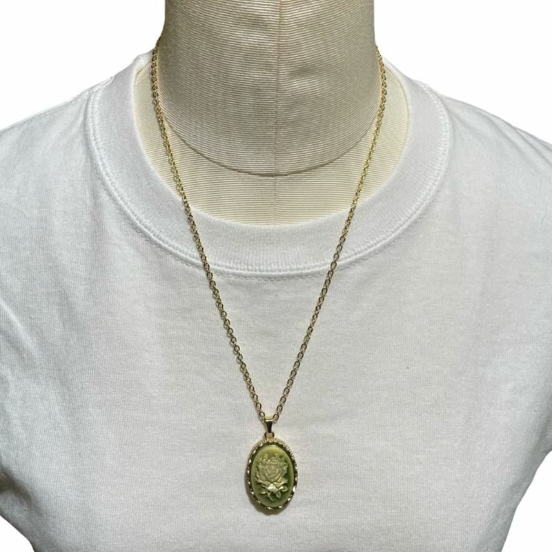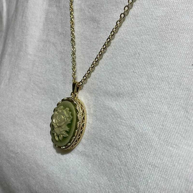 フラワー 西洋 彫刻 デザイン チャーム ネックレス ゴールド×グリーン