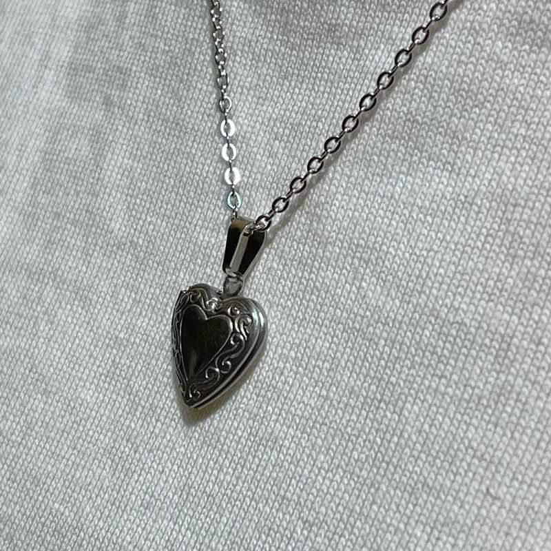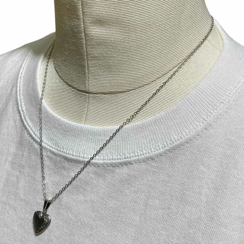 オープンロケット ハート チャーム デザイン ネックレス シルバー