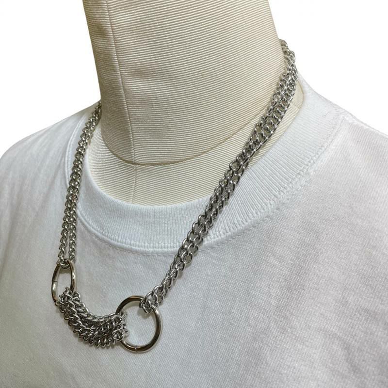 2連 チェーン フープ デザイン ネックレス シルバー
