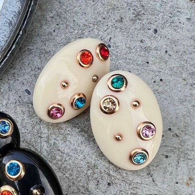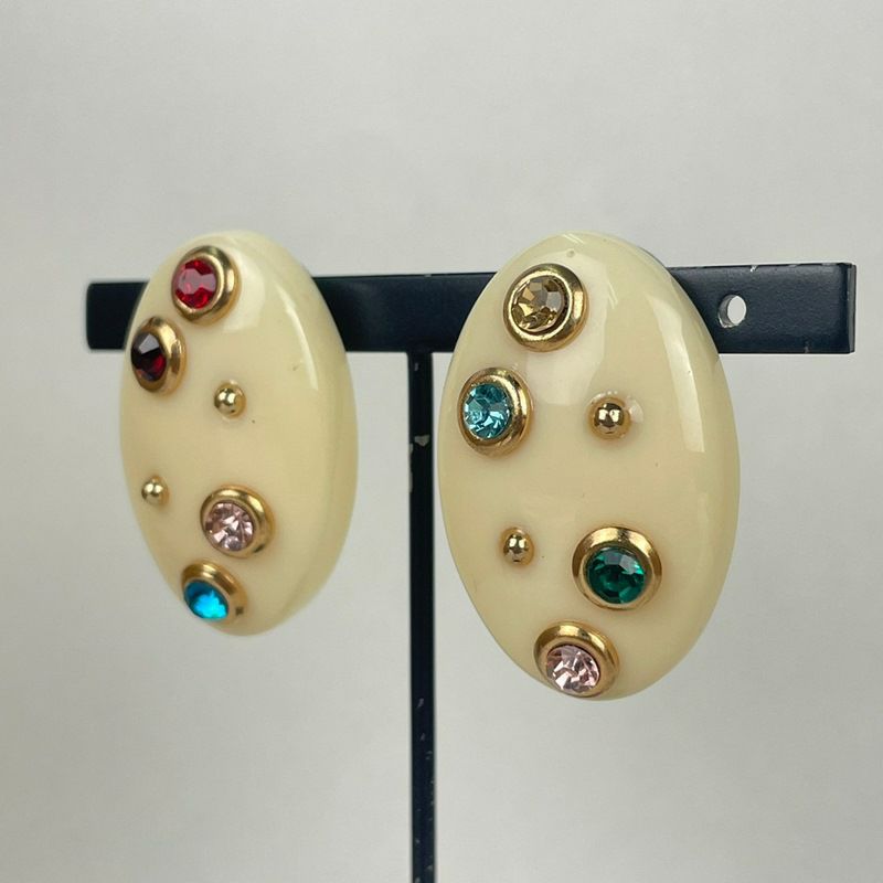 カラフル ストーン ピアス ベージュ