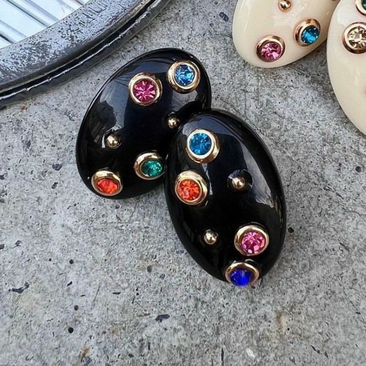 カラフル ストーン ピアス ブラック