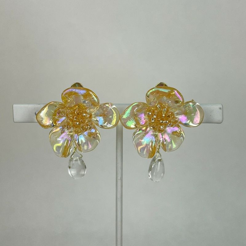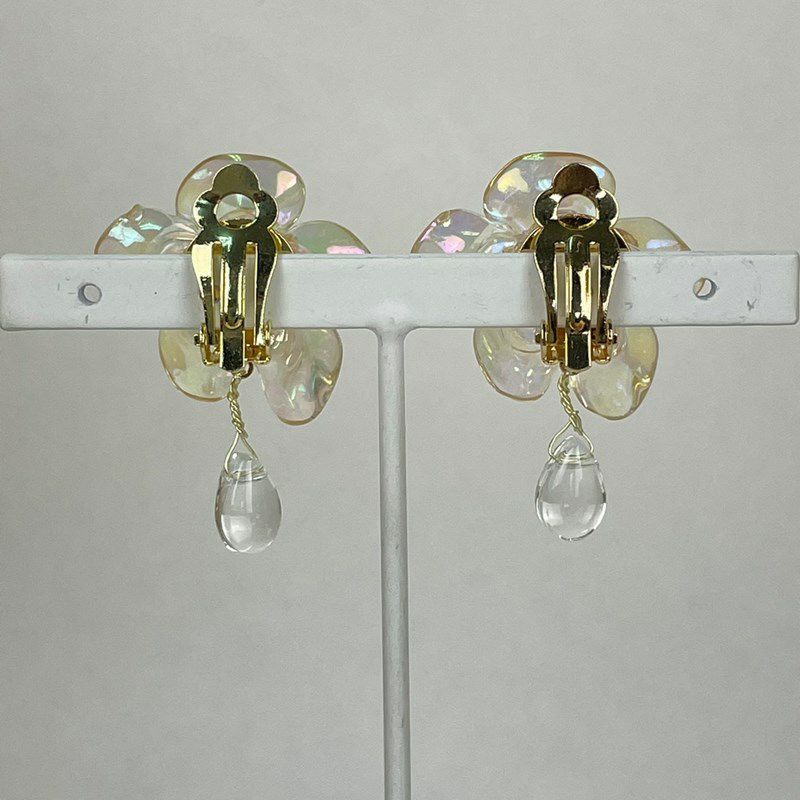 フラワー デザイン イヤリング クリア