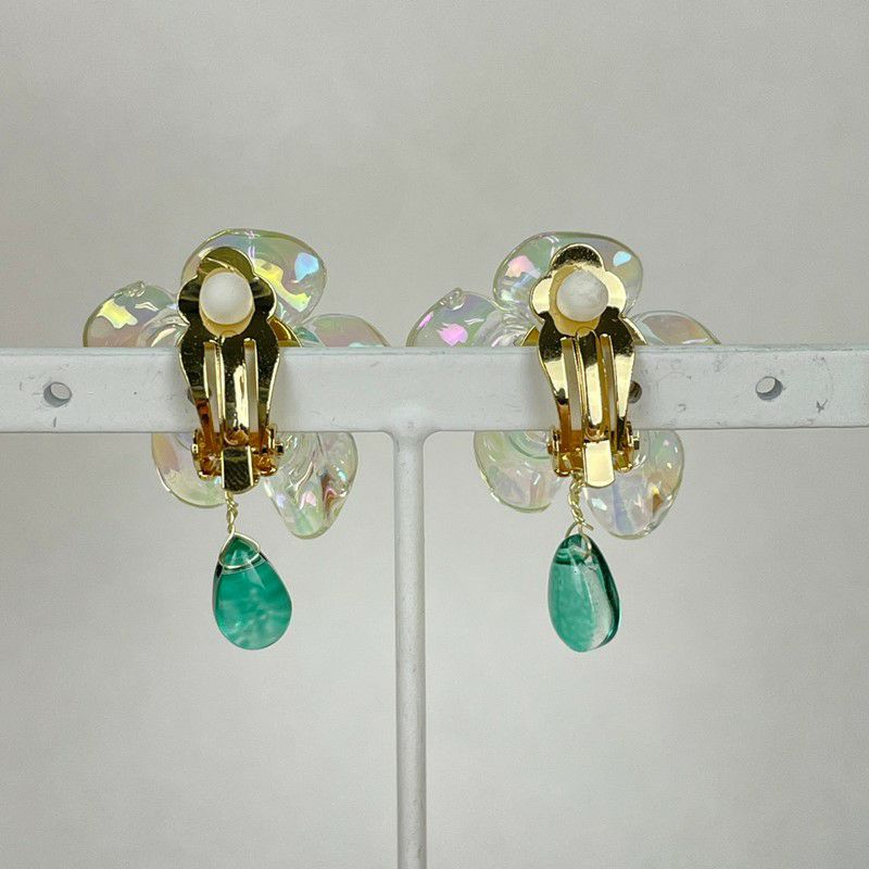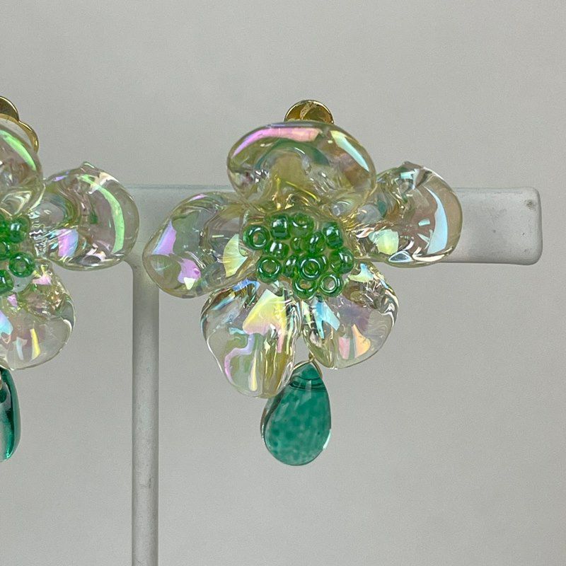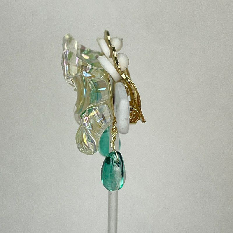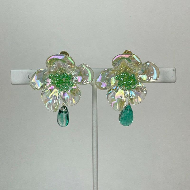 フラワー デザイン イヤリング クリア グリーン