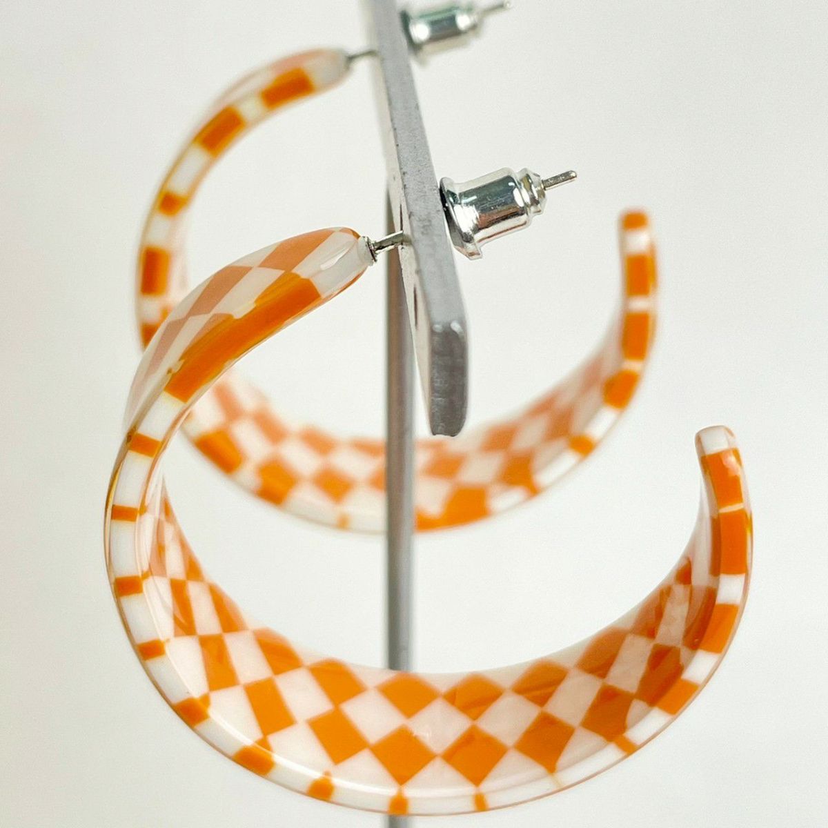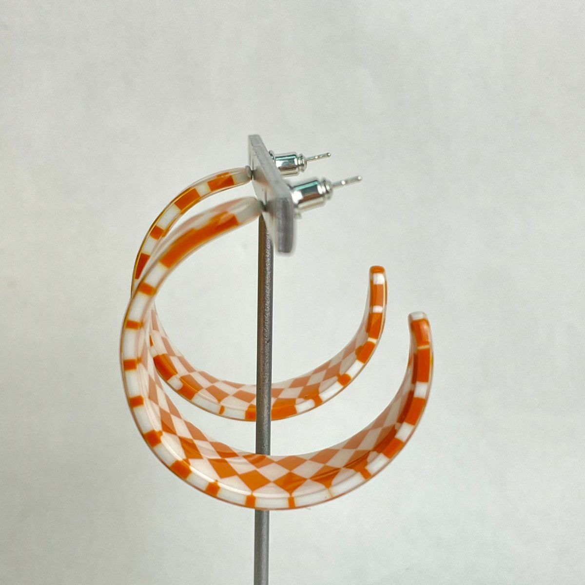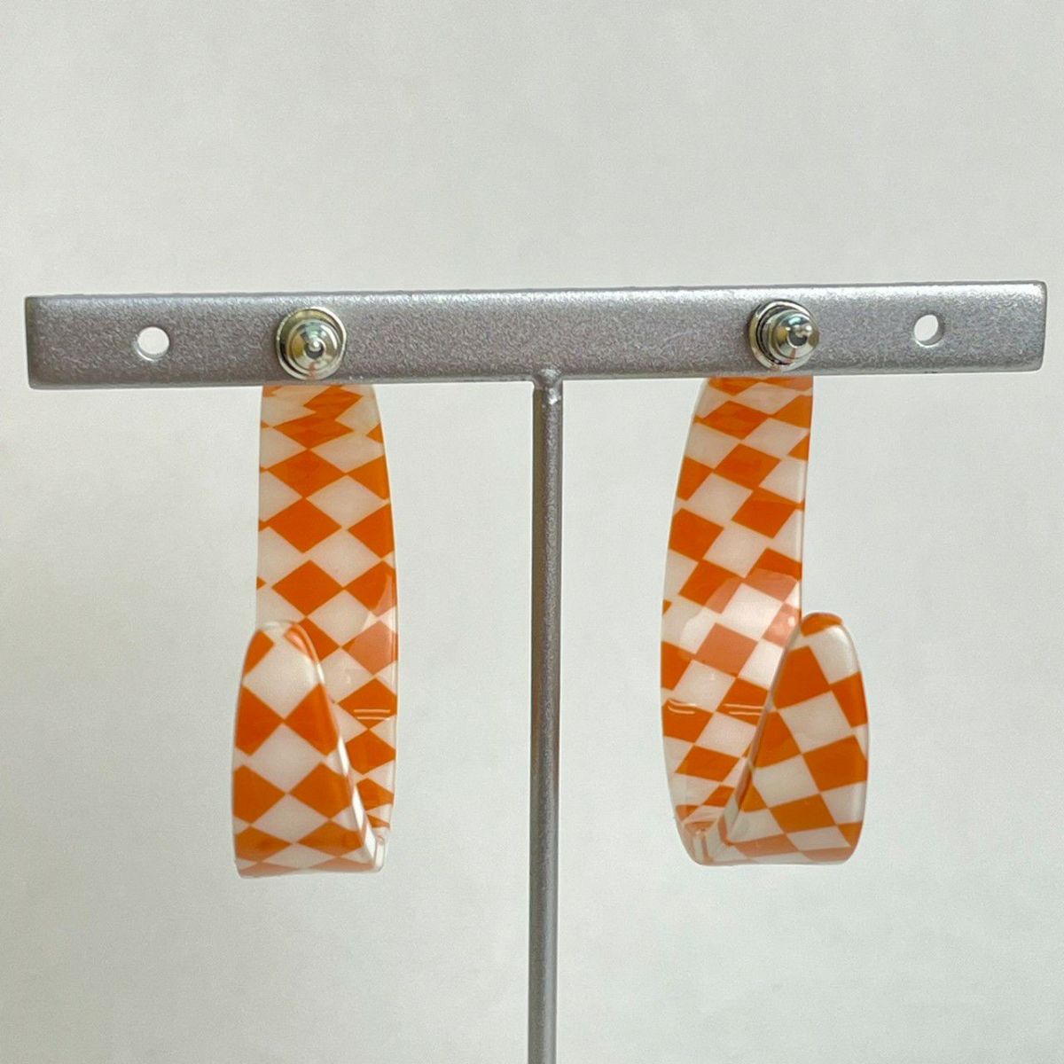 ブロックチェック フープピアス オレンジ