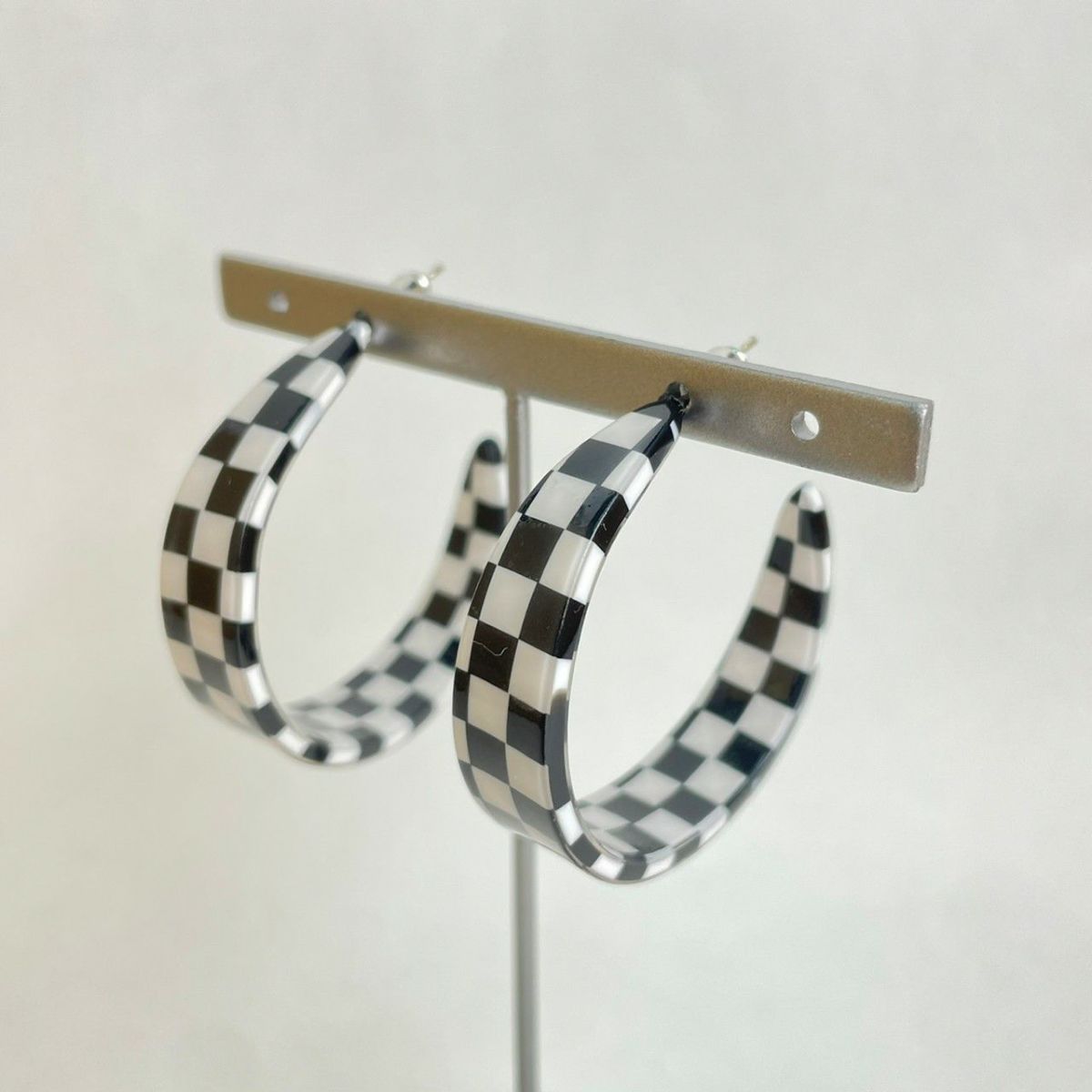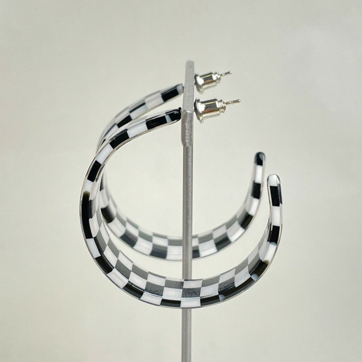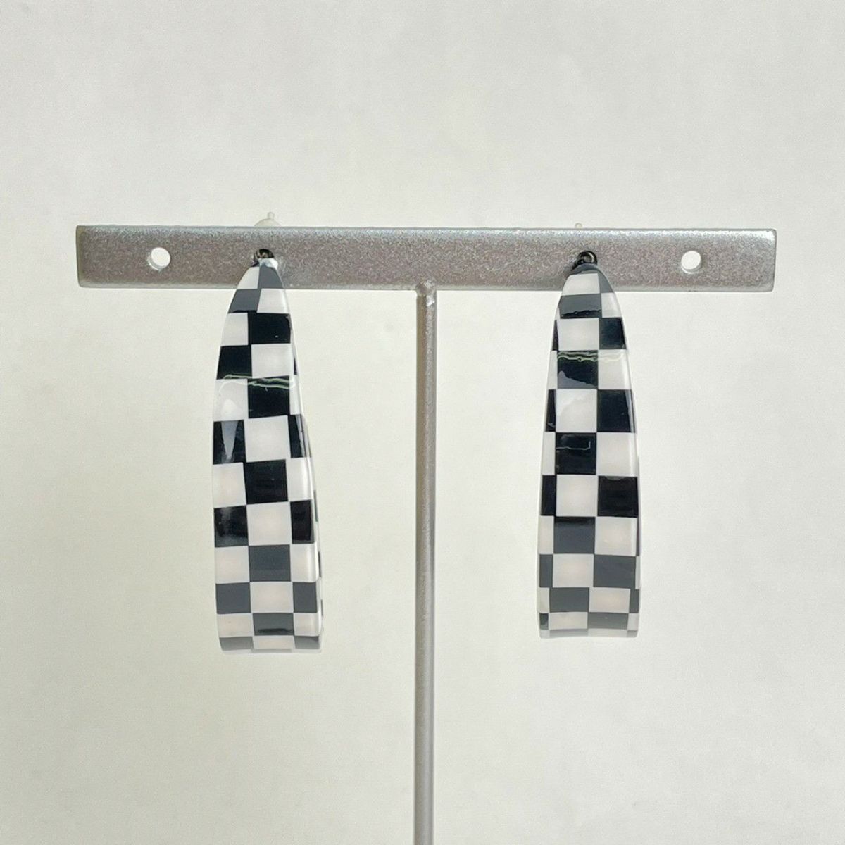 ブロックチェック フープピアス ブラック
