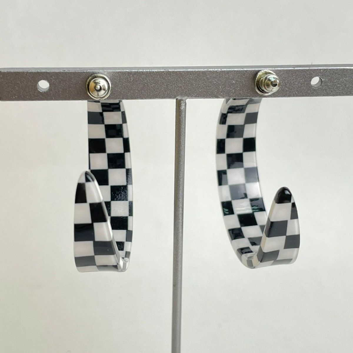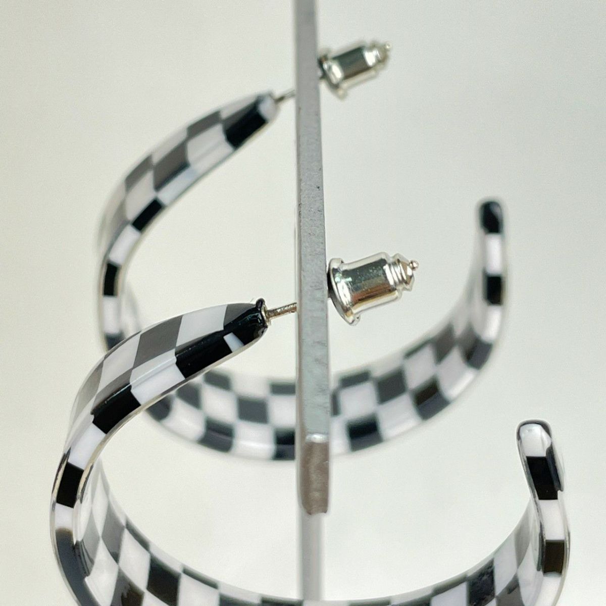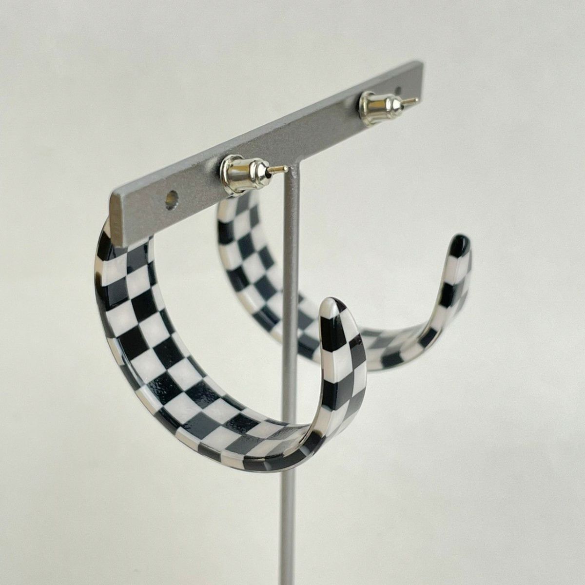 ブロックチェック フープピアス ブラック