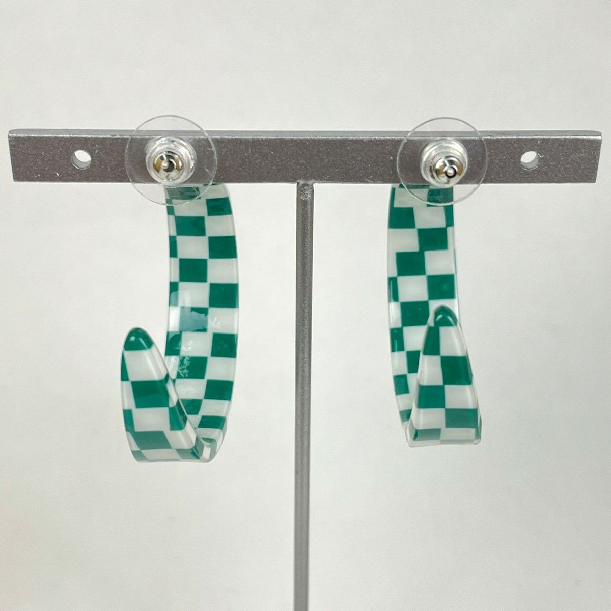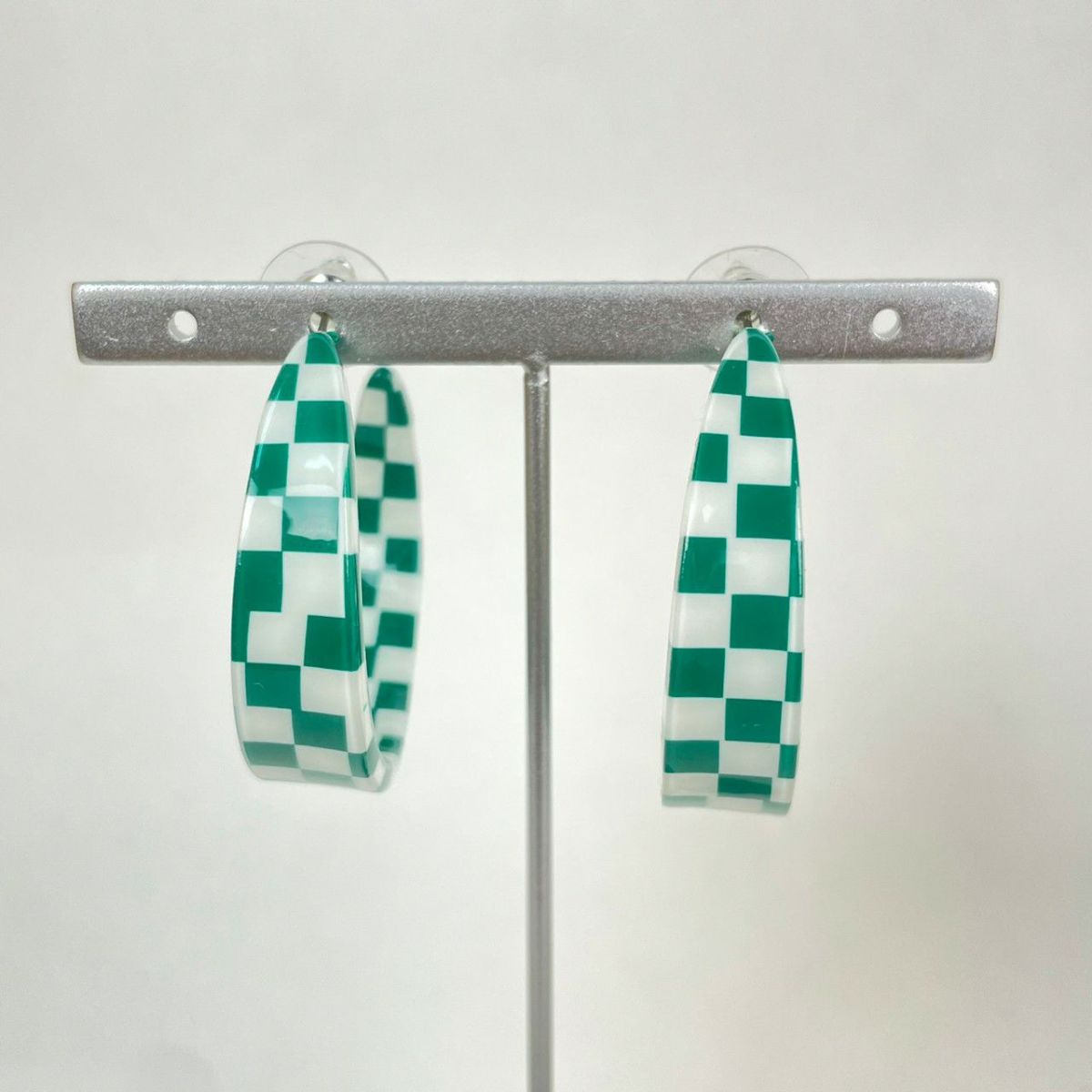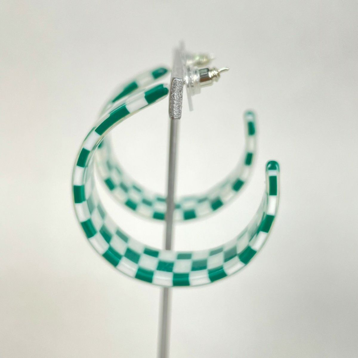 ブロックチェック フープピアス グリーン