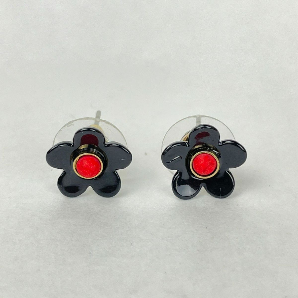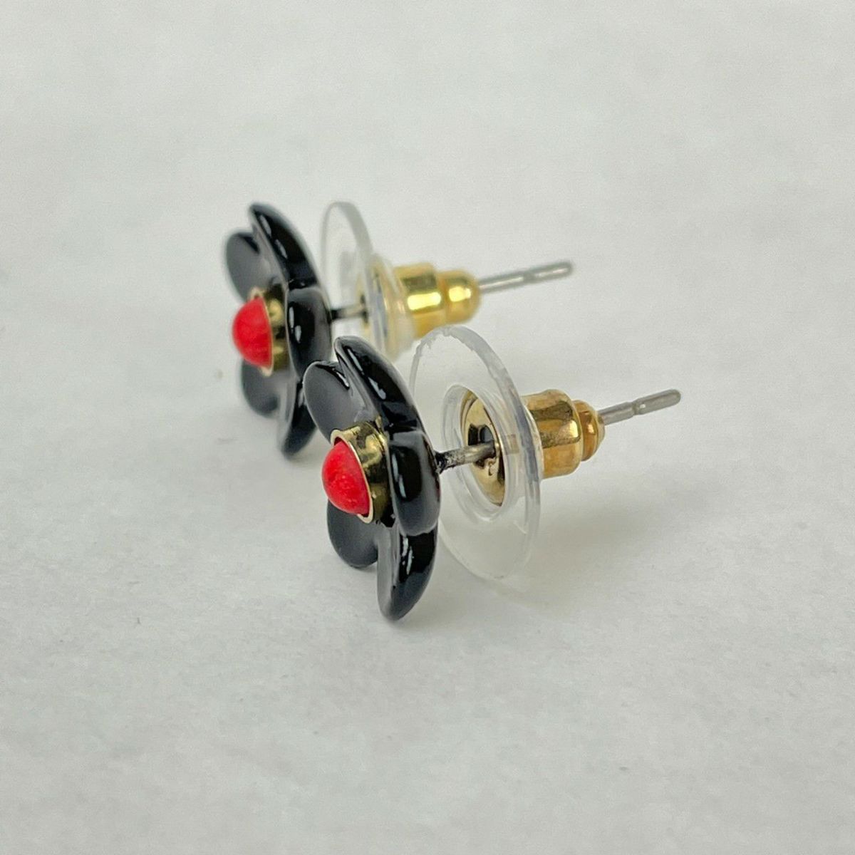 フラワー デザイン ピアス ブラック×レッド