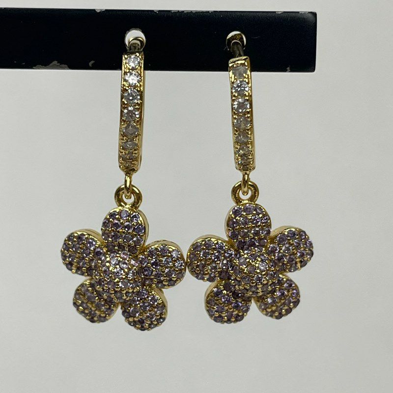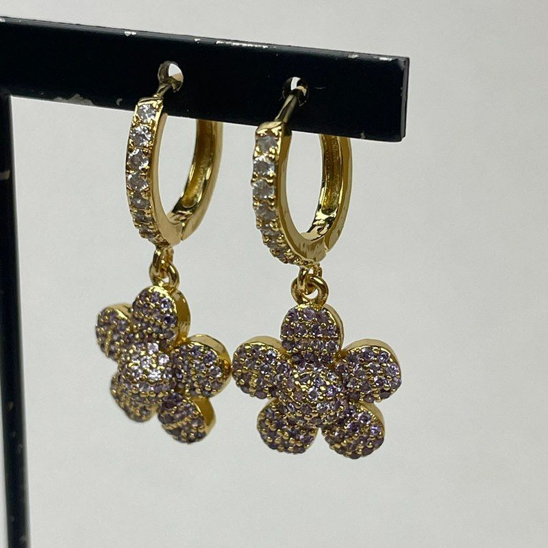 フラワー デザイン ピアス ゴールド×パープル