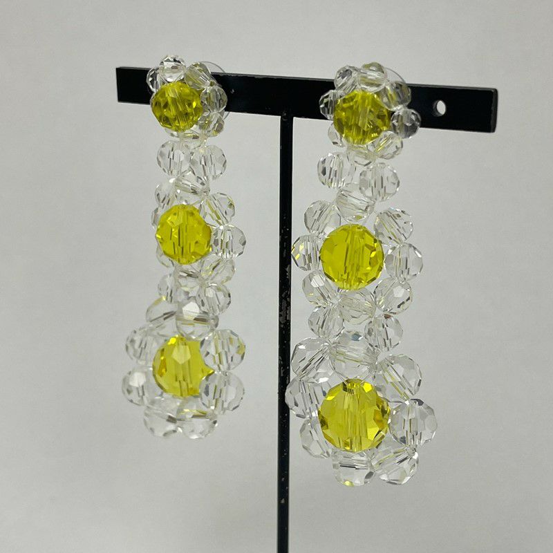 フラワー デザイン ビーズ ピアス イエロー