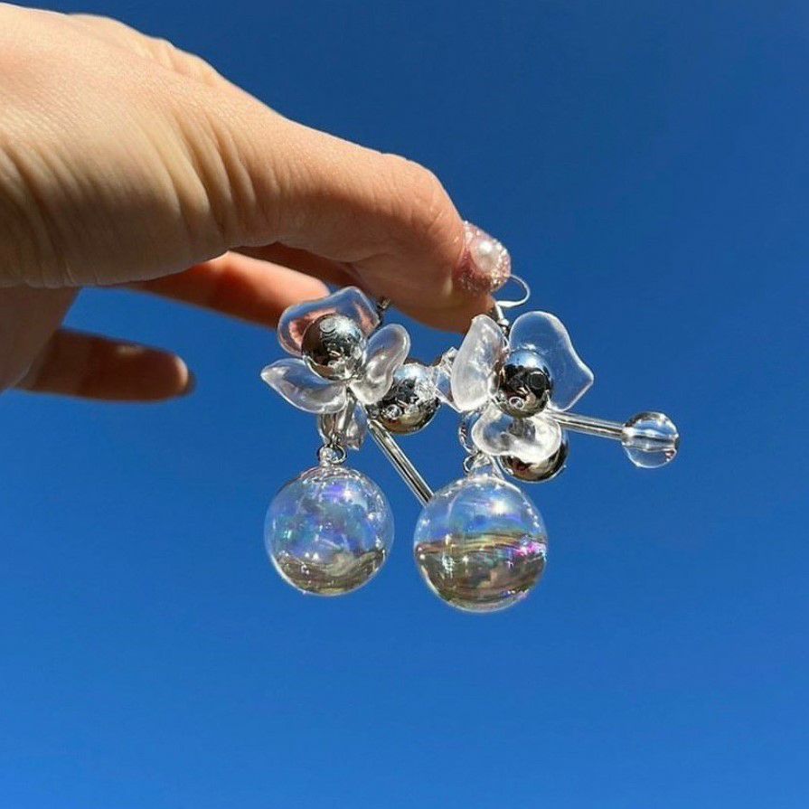 フラワー デザイン クリア ピアス クリア×シルバー