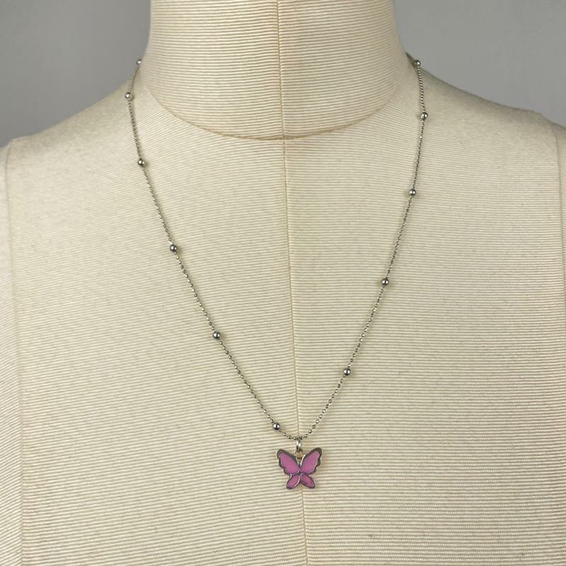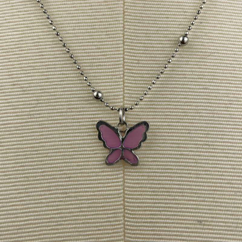 バタフライ デザイン ネックレス シルバー×パープル