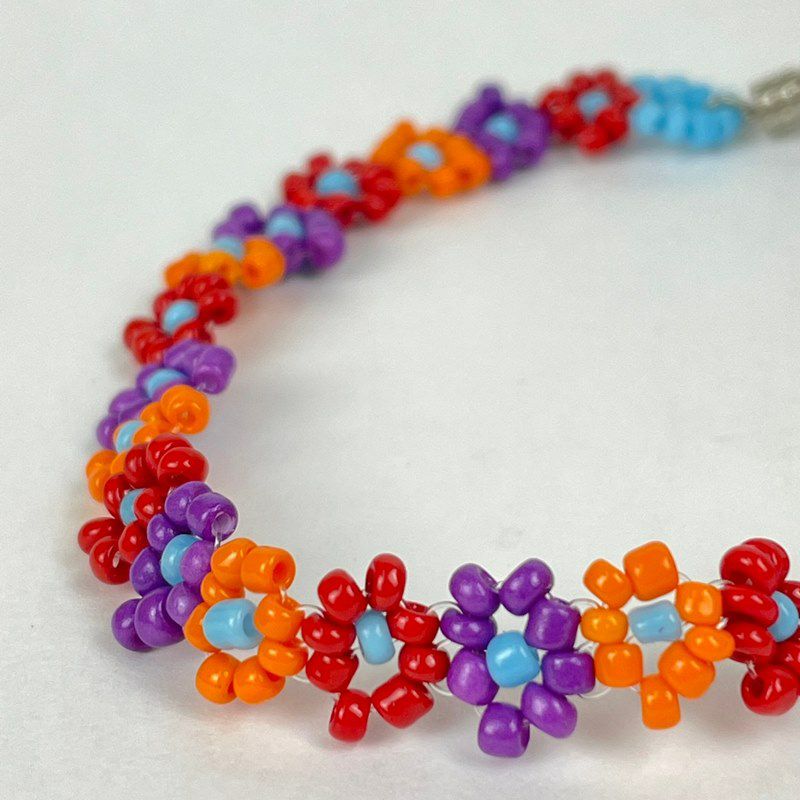 フラワー デザイン ビーズ ブレスレット レッド×オレンジ×パープル