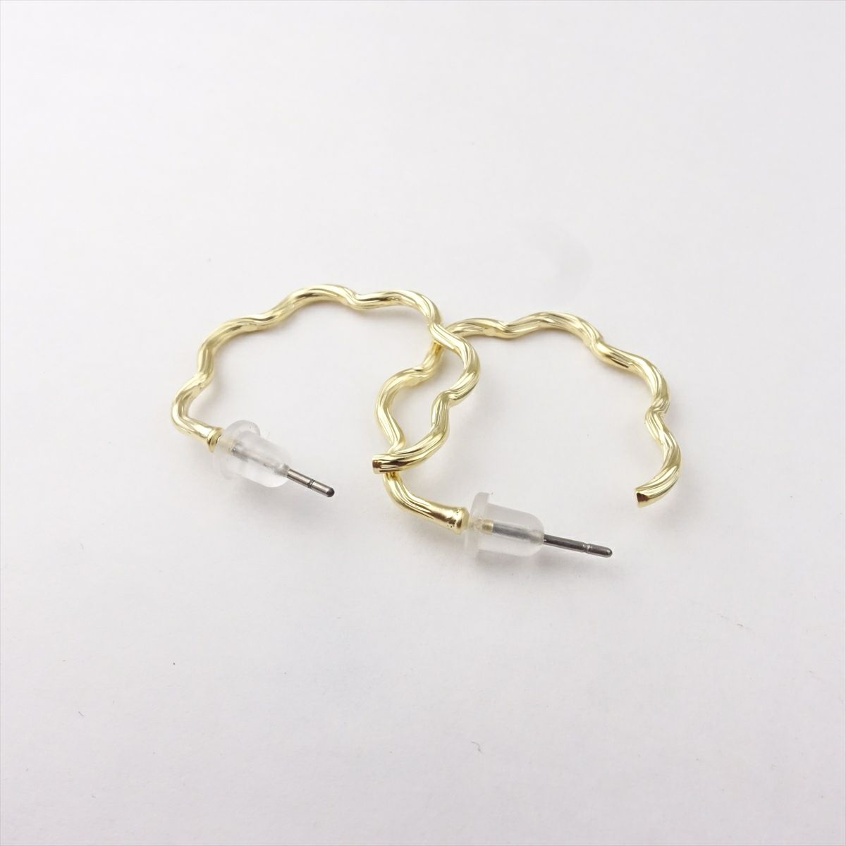 ウェーブデザイン キャッチピアス ゴールド