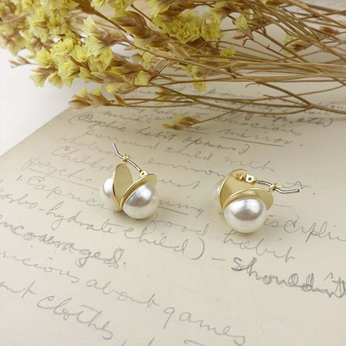パールはさみピアス ゴールド