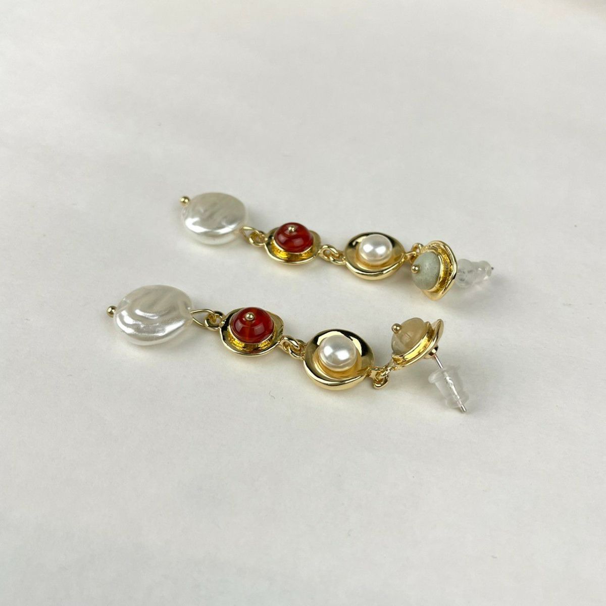 カラフル パール×ストーン 4連キャッチピアス