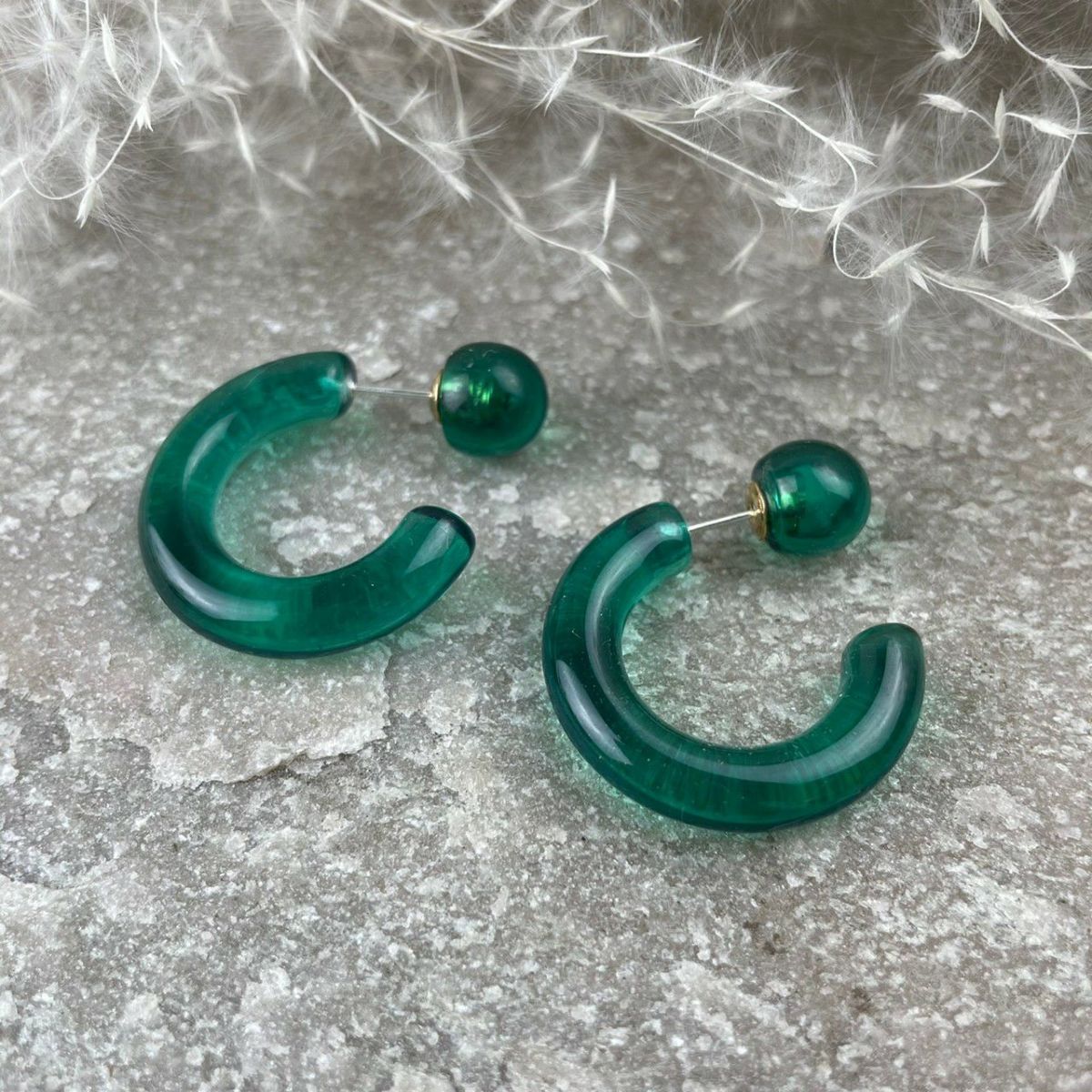 フープキャッチピアス グリーンクリア