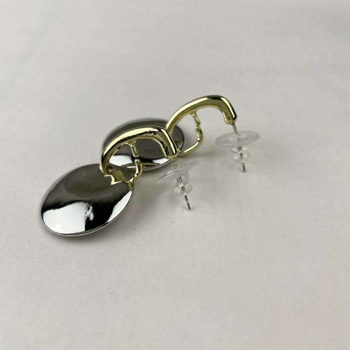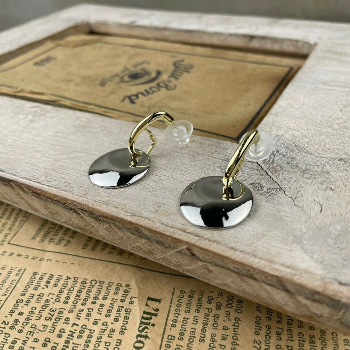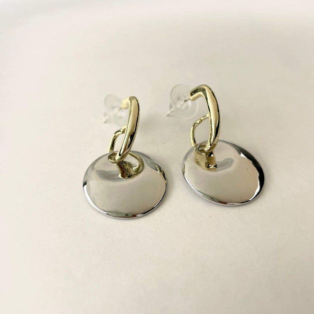 シルバー×ゴールド サークルキャッチピアス