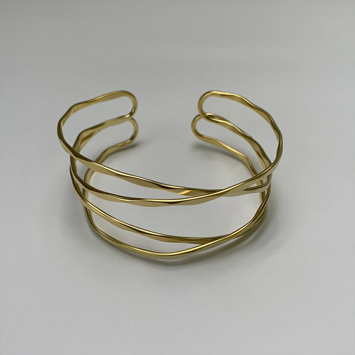 クワドループル クロス ウェーブ デザイン バングル マット ゴールド
