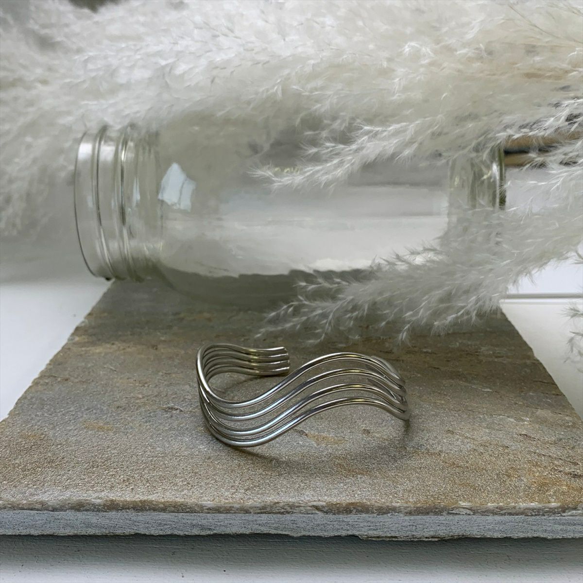 クワドループル ウェーブ デザイン バングル シルバー