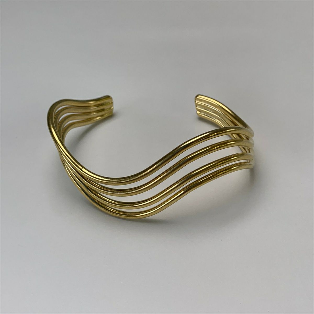 クワドループル ウェーブ デザイン バングル ゴールド