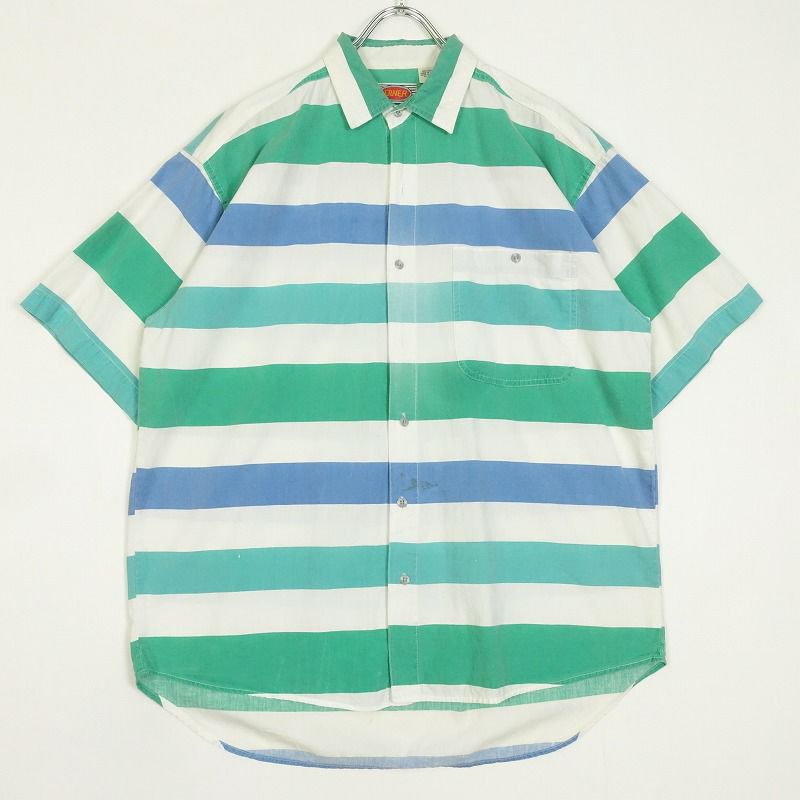 古着 DINER マルチカラー ワイドボーダー 半袖シャツ