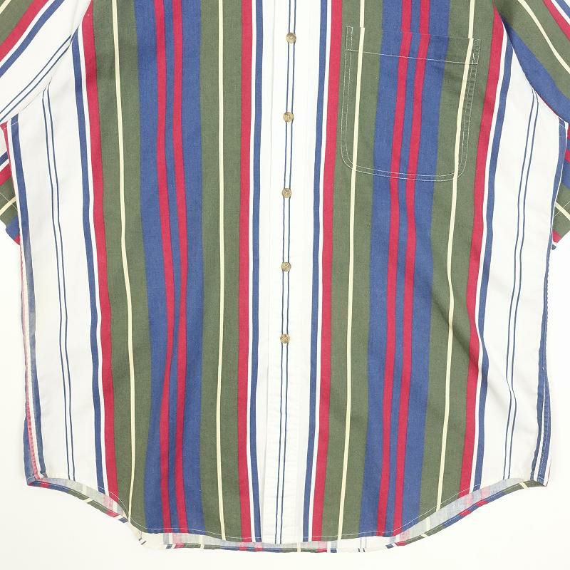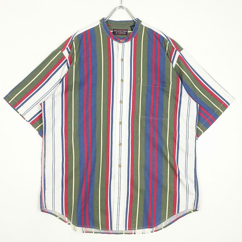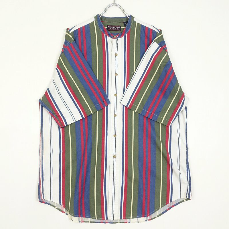古着 ROUNDTREE&YORKE ノーカラー ランダムストライプ 半袖シャツ