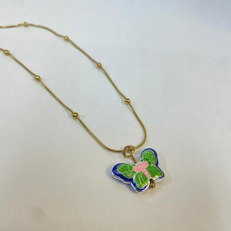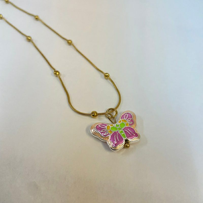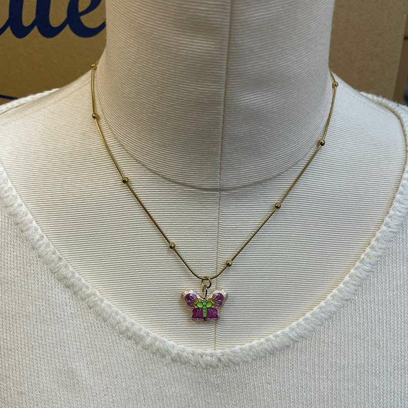 バタフライ チャーム ネックレス ゴールド ピンク