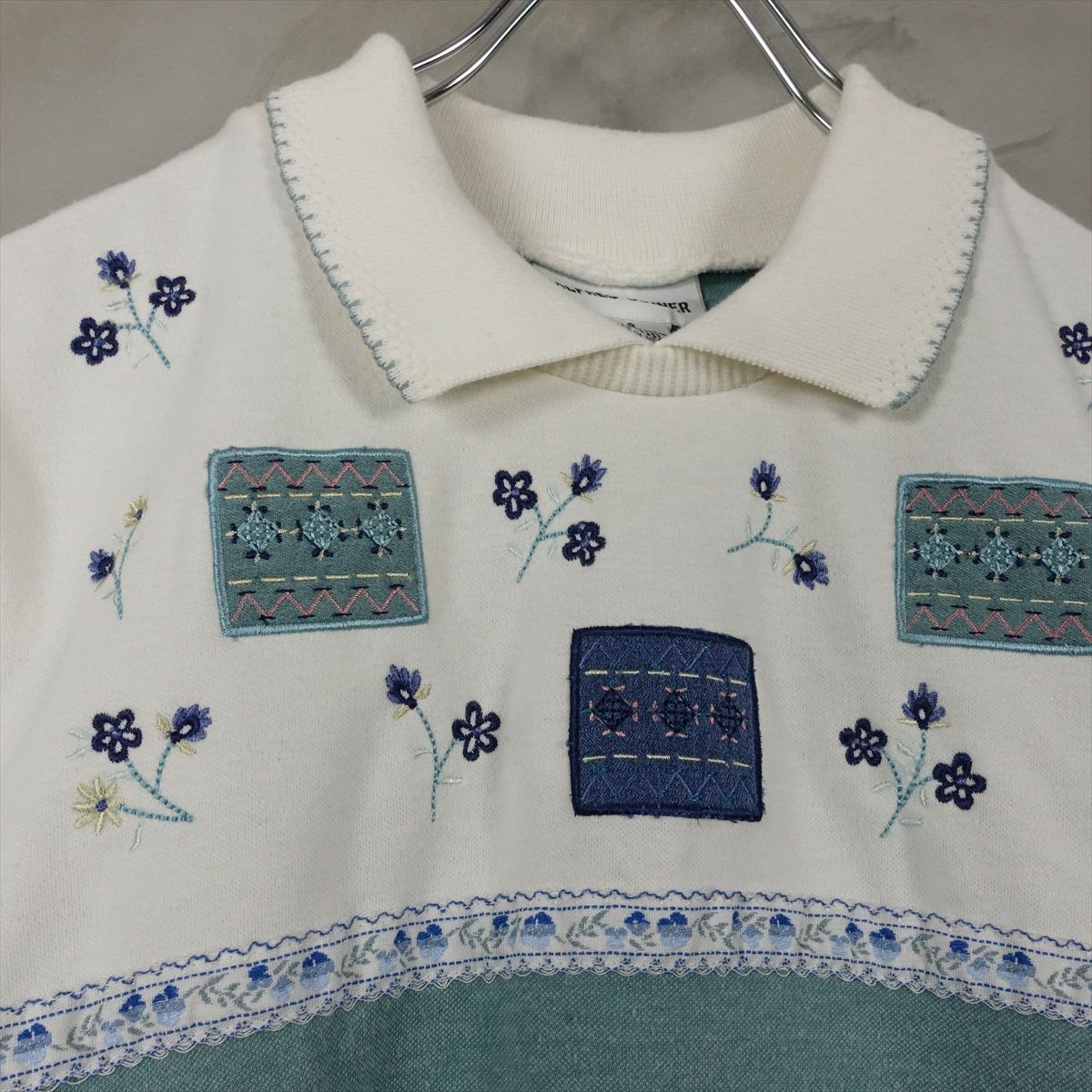 古着 襟付き フラワー刺繍 半袖スウェット