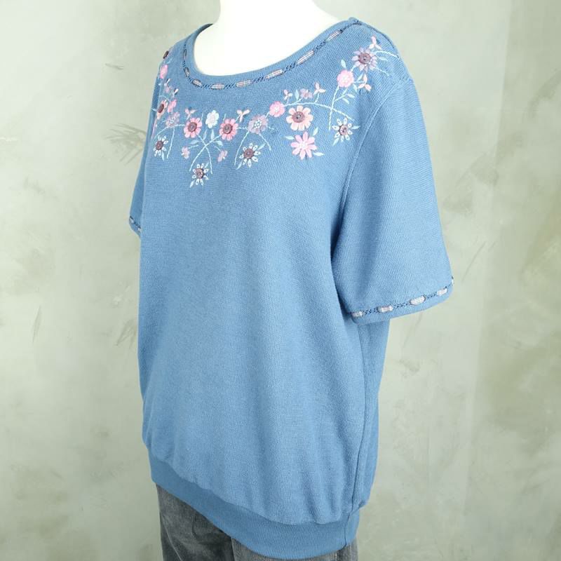 古着 ショート丈 花プリント Tシャツ