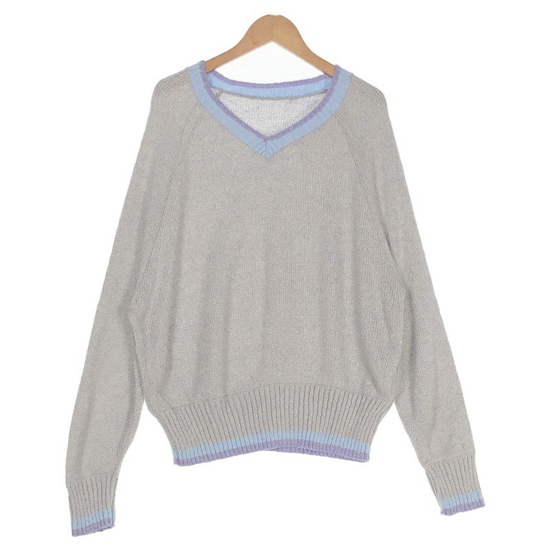 古着 Vネック パステルカラー 切替ニット