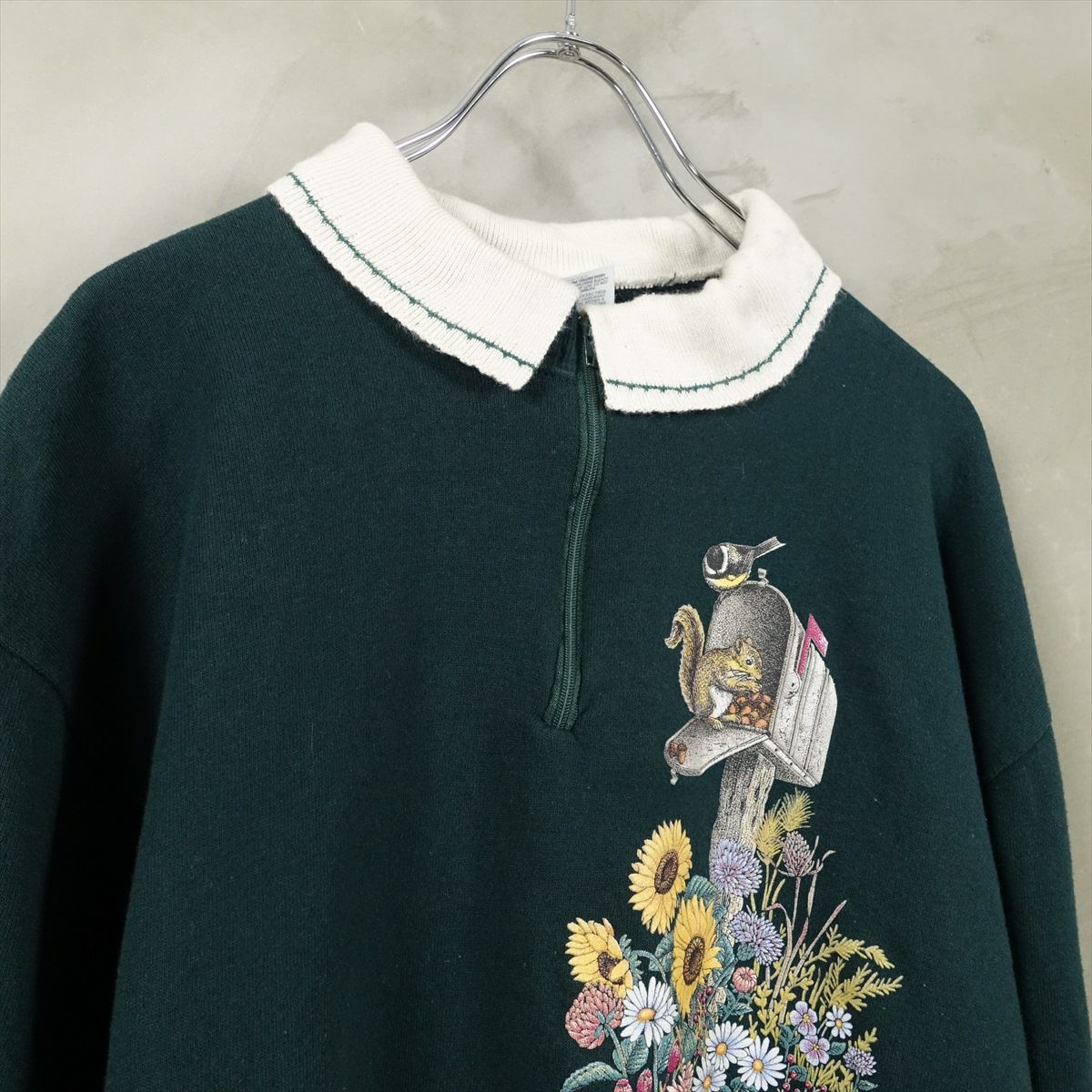 古着 襟付き ハーフジップ フラワープリントスウェット