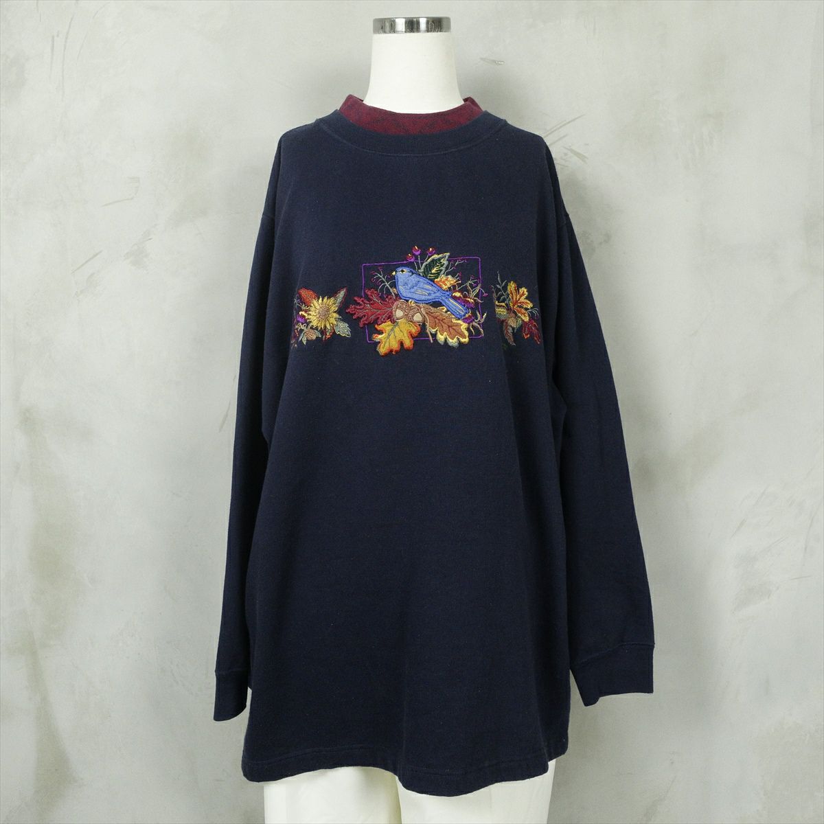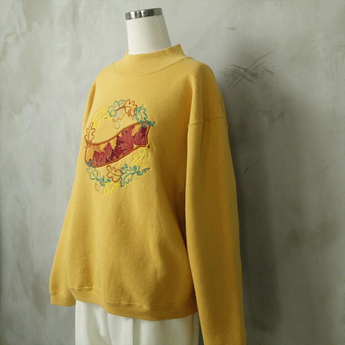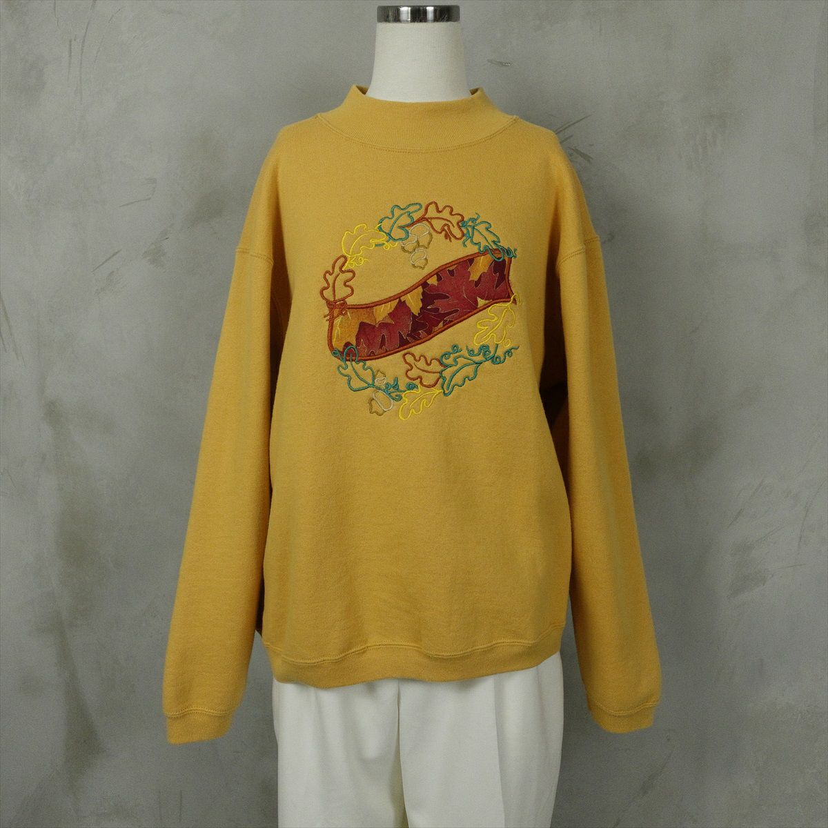 古着 タートルネック 刺繍プリント スウェット