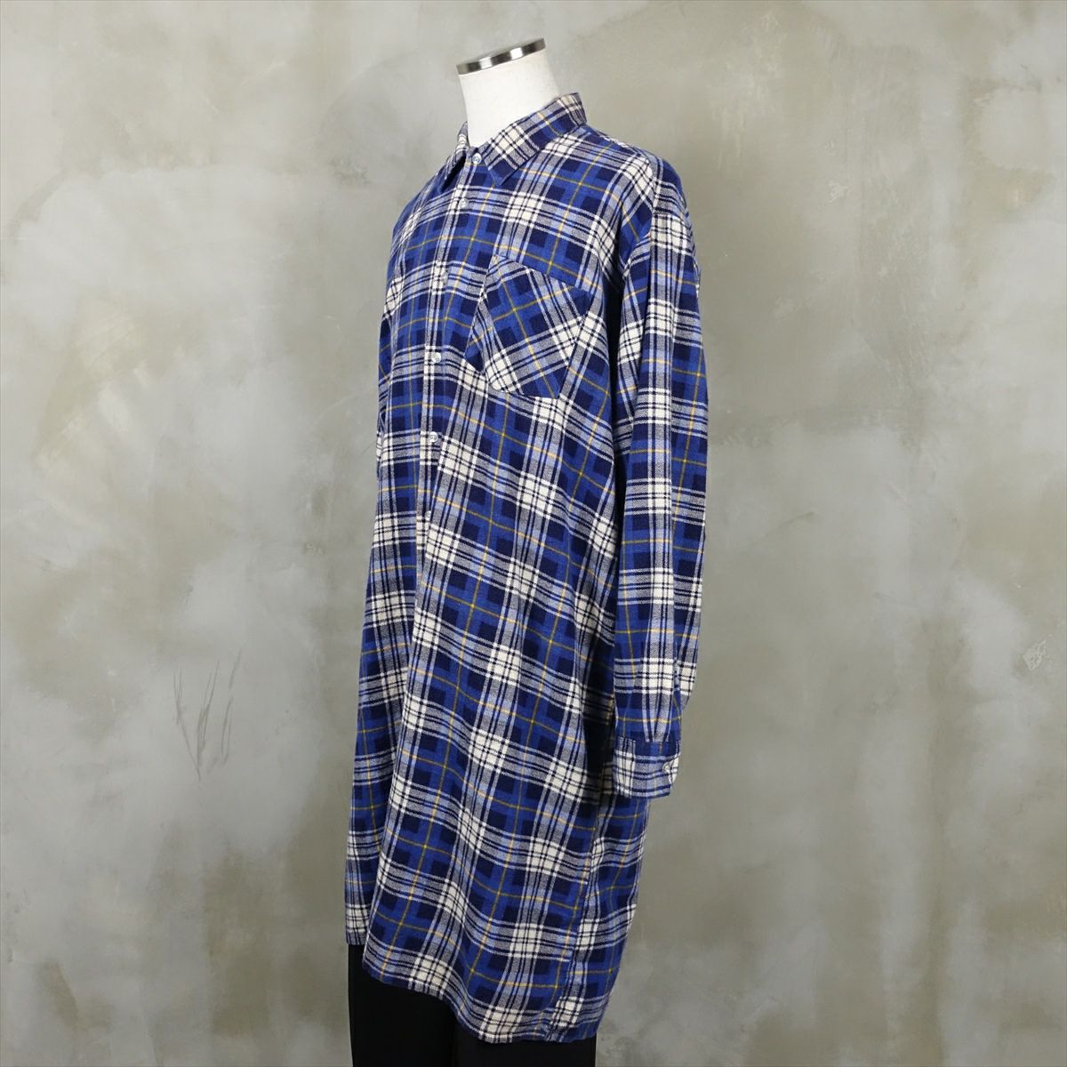 古着 EURO ロング丈 チェック プリントネルシャツ