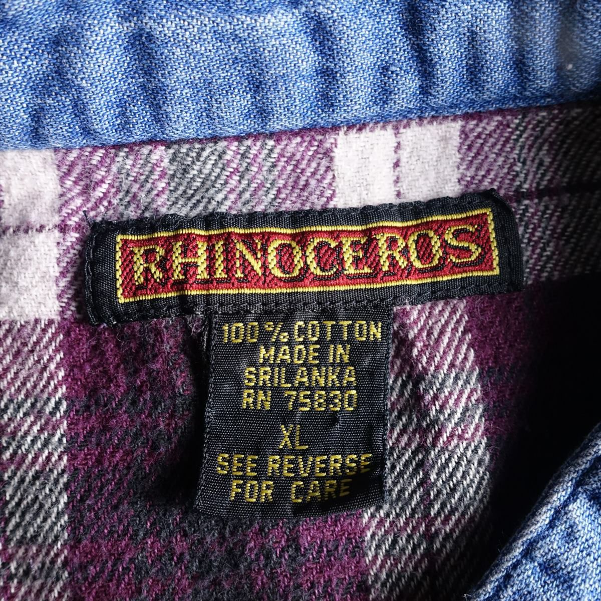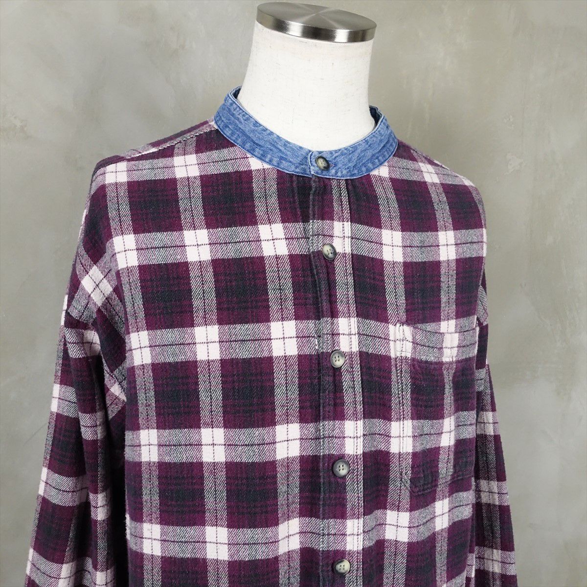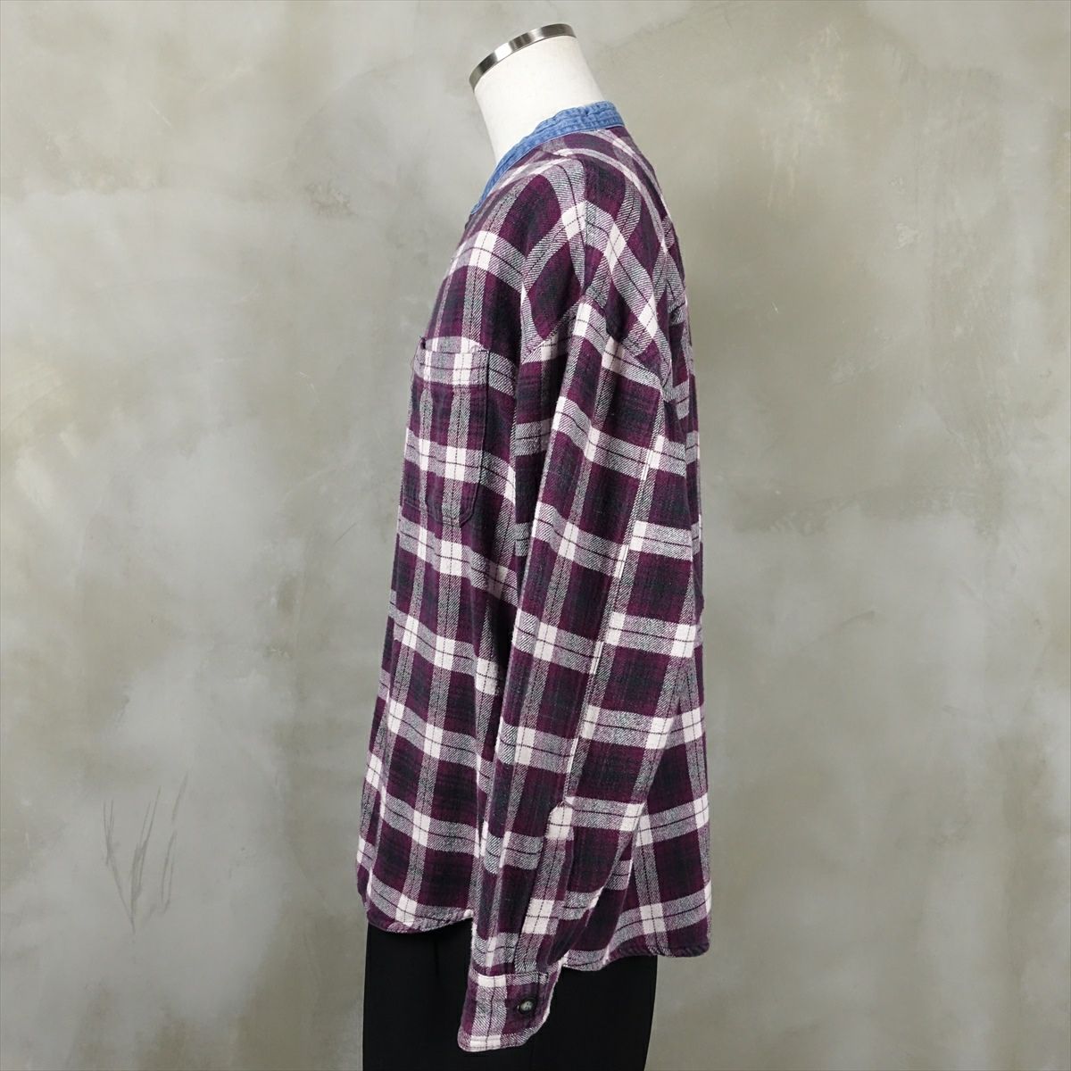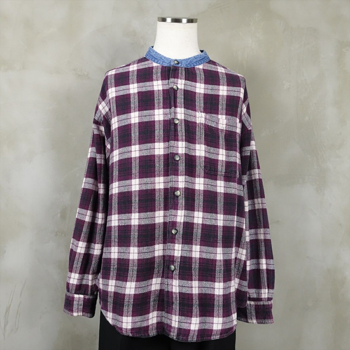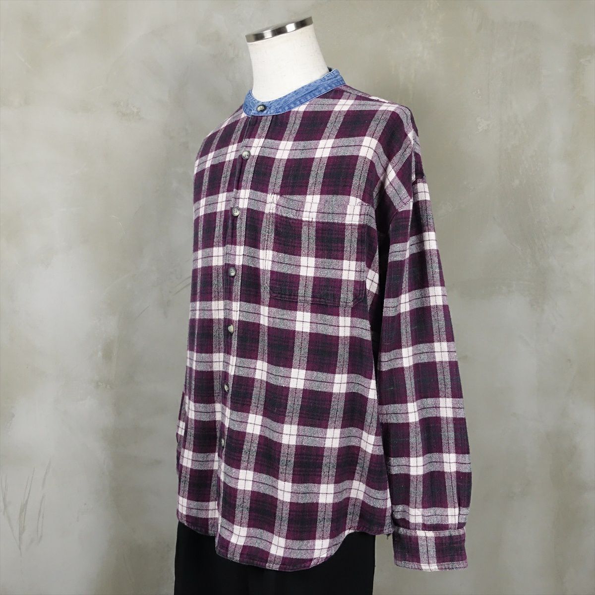 古着 RHINOCEROS ノーカラー コットンネルシャツ