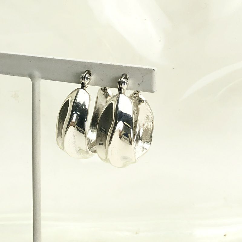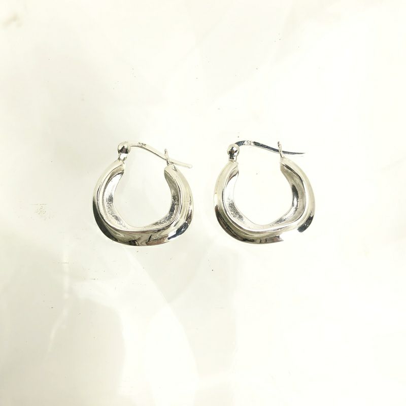 シルバー ウェーブ フープピアス