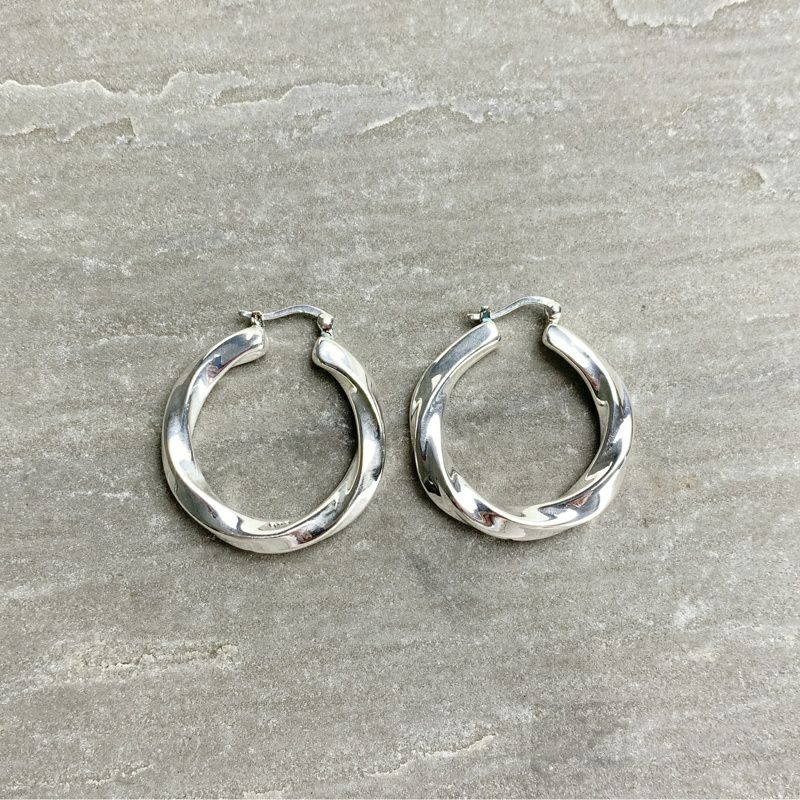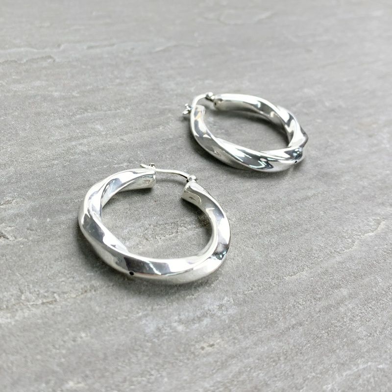 シルバー ツイスト フープピアス