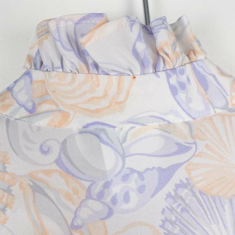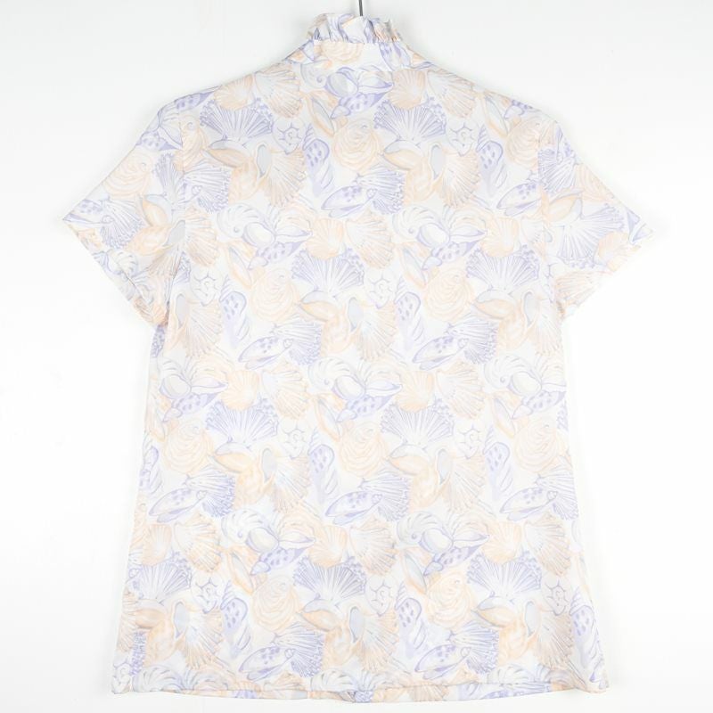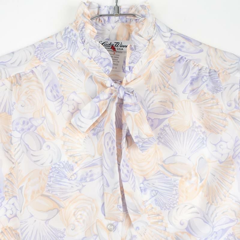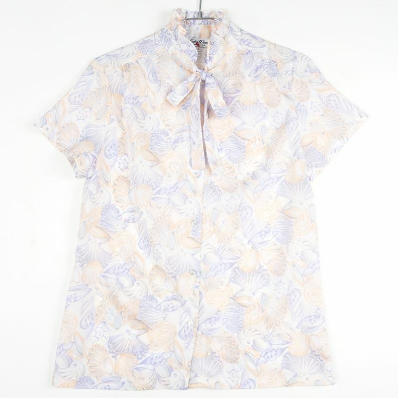 古着 シェルパターン フリルスタンド ボウタイ ショートスリーブシャツ
