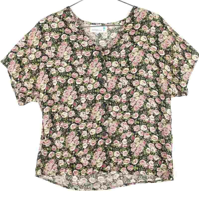 古着 花柄 レーヨン ノーカラー ショートスリーブシャツ
