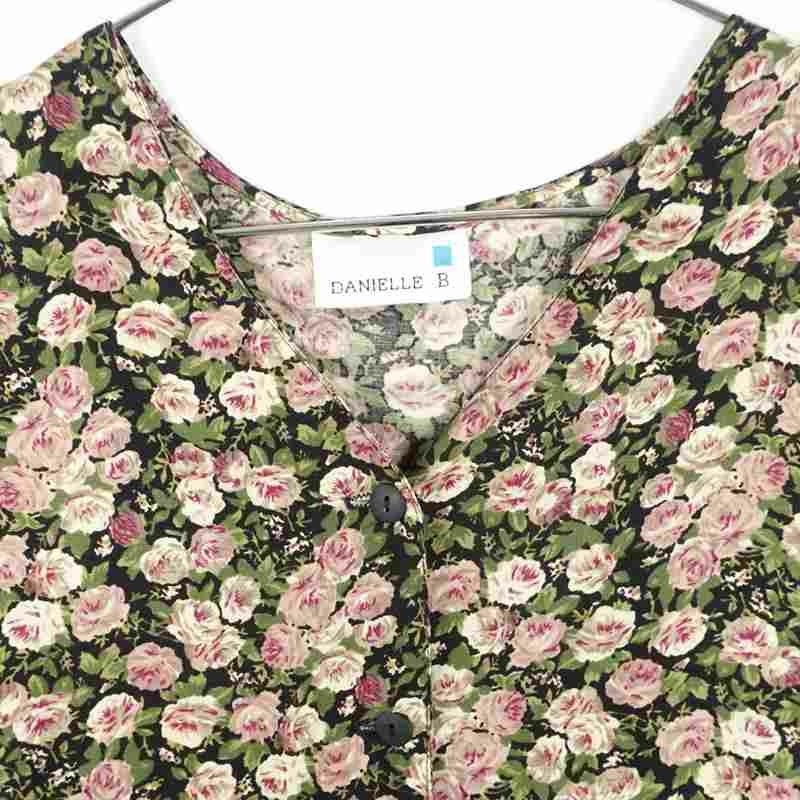古着 小花柄 ノーカラーシャツ