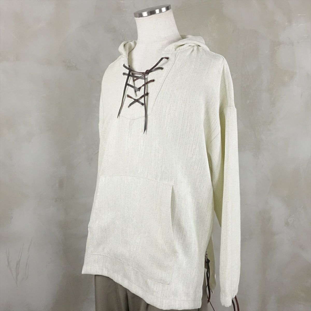 他の画像を見る fafatt ファファット ゴブランレースアップメキパー 販売価格 ¥ 8,580 税込 表情のあるゴブラン生地を使って作られたメキシカンパーカーです。古着で見られるメキシカンパーカーと違って襟元がレースアップ仕様になっております。袖口にも同様にレザーのヒモが付いており、お好みの丈間でサイズ調整、絞ることが可能となっています。両脇にはジップがあり、インナーを見せるスタイリングなどお楽しみいただけます。同型で大判は花柄も御座います。 カートに入れる お気に入りに登録する