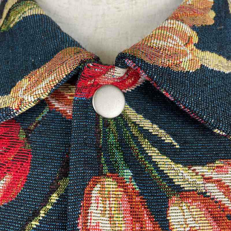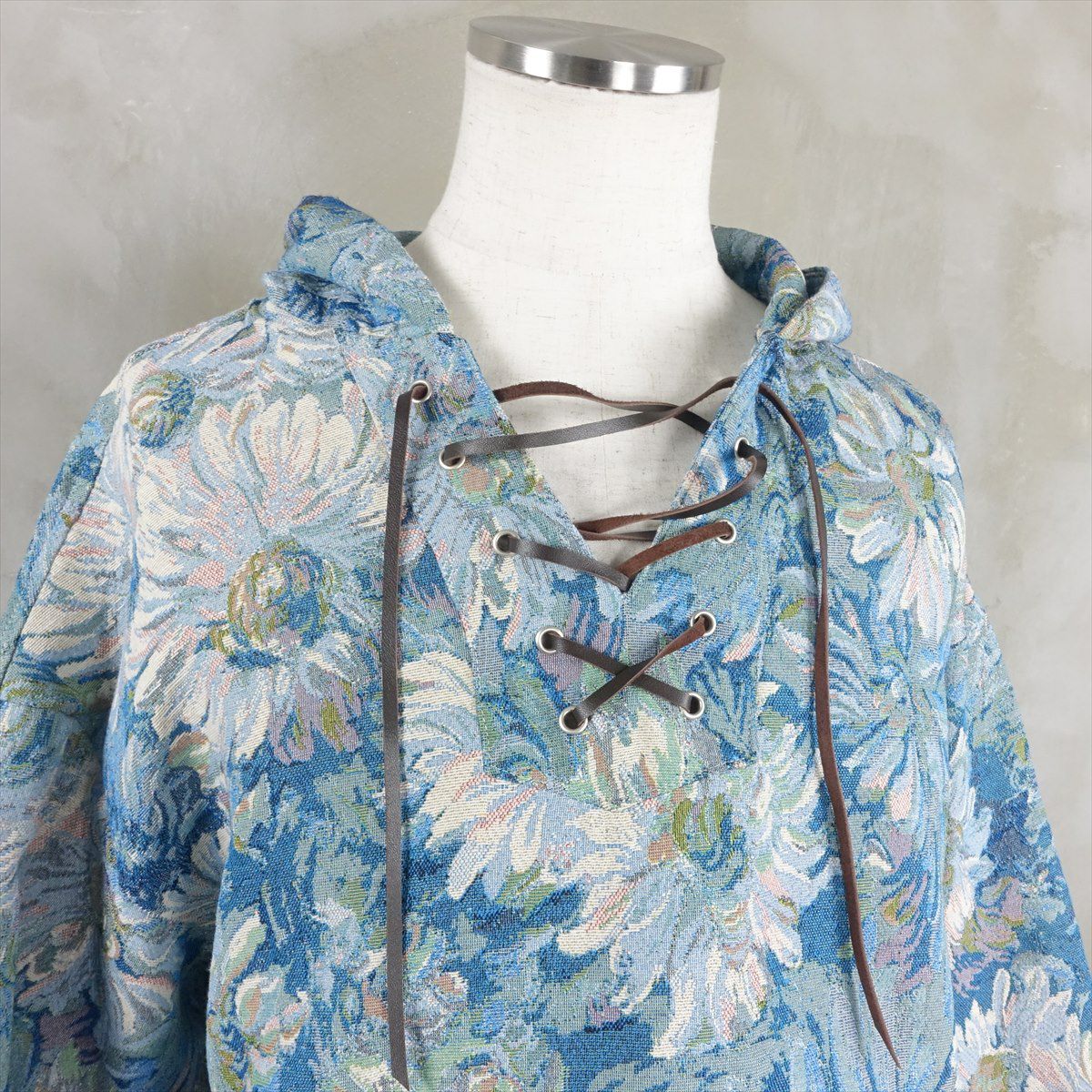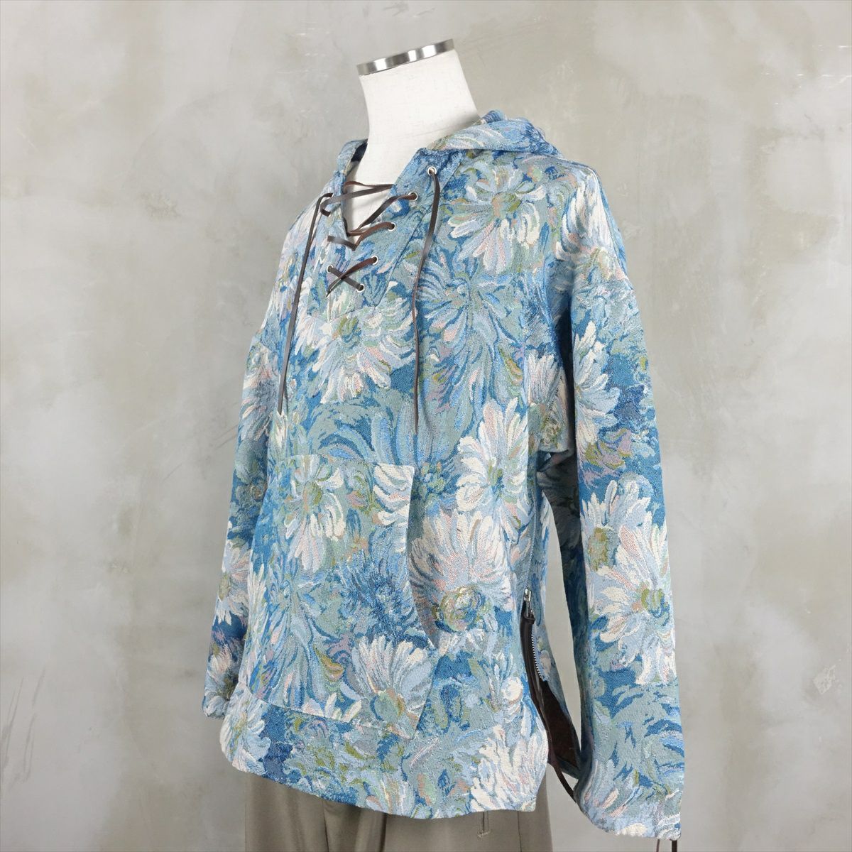 他の画像を見る fafatt ファファット ゴブランレースアップメキパー 販売価格 ¥ 8,580 税込 大判の花柄ゴブラン生地を使って作られたメキシカンパーカーです。古着で見られるメキシカンパーカーと違って襟元がレースアップ仕様になっております。袖口にも同様にレザーのヒモが付いており、お好みの丈間でサイズ調整、絞ることが可能となっています。両脇にはジップがあり、インナーを見せるスタイリングなどお楽しみいただけます。同型で無地も御座います。 カートに入れる お気に入りに登録する