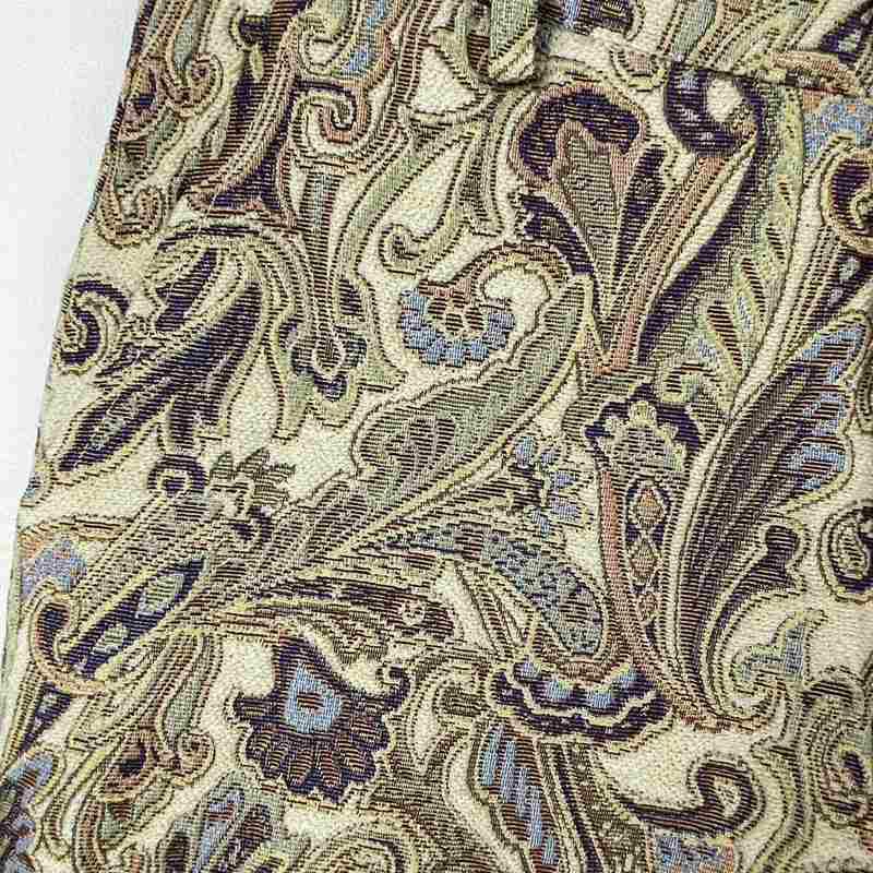 他の画像を見る Fafatt ファファット ゴブラン 総柄パンツ 販売価格 ¥ 7,480 税込 ベージュベースのゴブランフレアパンツです。履いた時のシルエットが綺麗で、ユニセックスで着て頂けます。トップスに同色のアイテムを合わせるとまとまりのあるスタイリングが組めます。落ち着いた色味で、柄物に挑戦したい方にもおすすめです。 カートに入れる お気に入りに登録する